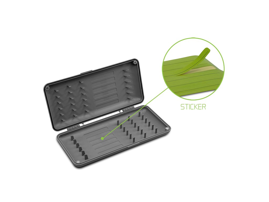 Delphin HardBOX REAXE je praktická pomůcka pro uložení hotových method feederových návazců, kterou ocení každý rybář lovící na tuto stále více populárnější metodu lovu. Plochý tvar boxu a praktické rozměry šetří místo ve vašem batohu či tašce. Pevný plast boxu a robustní panty zaručují dlouhou životnost. Kontaktní plochy jsou opatřeny pryžovým těsněním, což zaručuje dokonalé těsnění a zamezuje přístupu vlhkosti z vnějšího prostředí. Box obsahuje set dvanácti plastových výstupků pro uložení návazců v délkách 10, 12,5 a 15cm. Otevírání a zavírání boxu je realizováno pomocí magnetů. Box navíc obsahuje sadu nálepek, díky nimž si můžete přizpůsobit vzhled boxu do feederové série REAXE z dílny Delphin.Doplňkové parametry