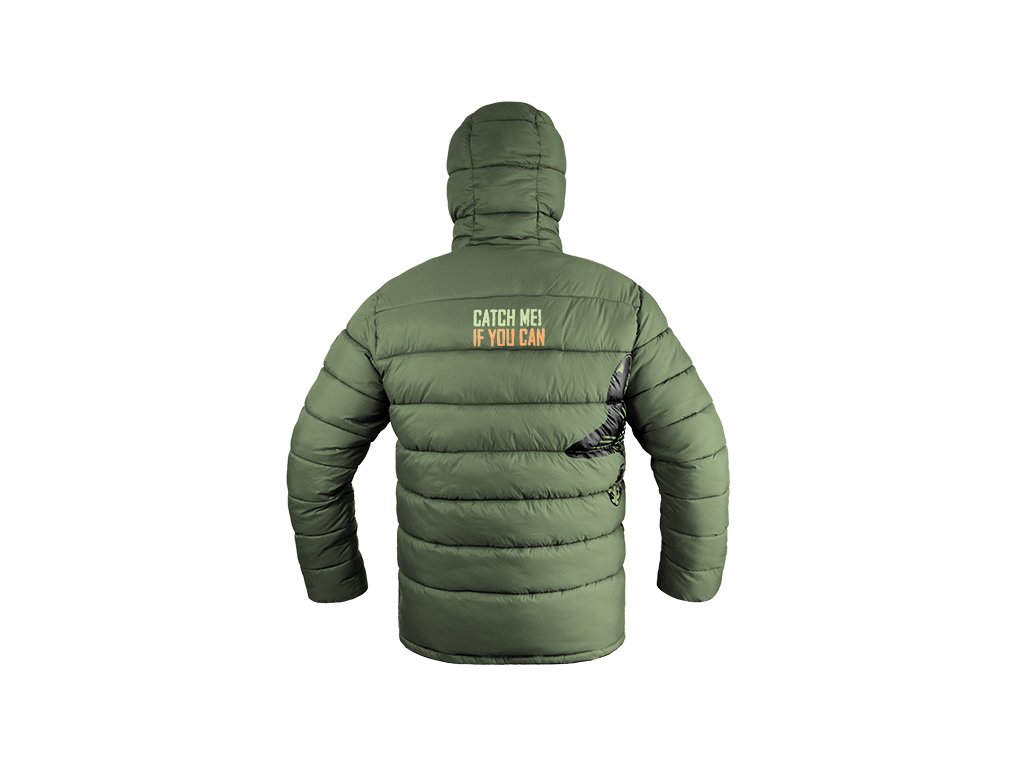 Pokud jste rybářem, kterého neodradí i to nejchladnější počasí, bunda Delphin Catch me WINTER CARP je kusem zimního outfitu, na který se můžete spolehnout. Silná termoizolační vrstva je zárukou ochrany vůči mrazu a větru, takže zůstanete v teple a budete se cítit vždy příjemně. Zároveň je bunda velmi pohodlná a příjemná k nošení, přičemž vám umožňuje volný pohyb potřebný pro vykonávání činností během lovu. Bunda je vyrobena z odolných materiálů a vyznačuje se kvalitním zpracováním. Na přední straně bundy se nacházejí dvě kapsy opatřené kvalitními zipy v tmavě zelené barvě. Kromě výborných vlastností se bunda vyznačuje také stylovým designem. Tmavě zelená barva doplněná o velkou grafiku krmícího se kapra nenechá chladným nejednoho zarytého kapraře. Na zadní straně se navíc nachází poutavý slogan a na rukávu pryžová podšívka s logem Delphin. Složení: Vrchní materiál: 100% nylon Vnitřní výplň: 100% polyester Podšívka: 100% polyesterDoplňkové parametry