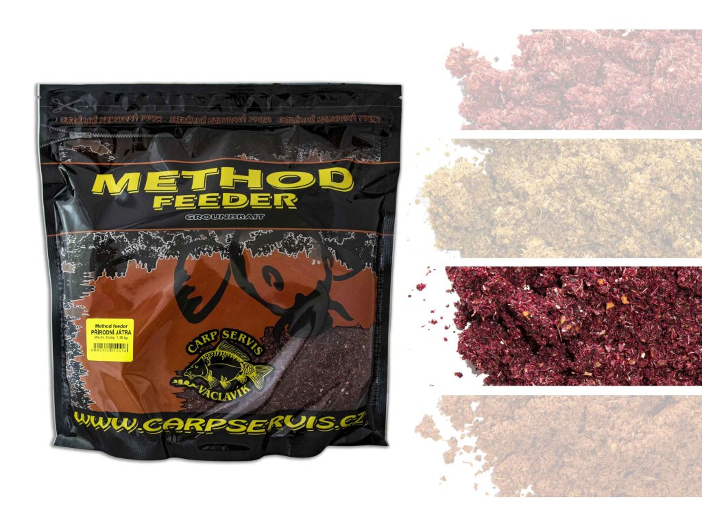 Method feeder je speciálně navlhčená vnadící směs k lovu kaprovitých ryb. Je složena z širokého spektra tepelně upravených surovin, které jsou zárukou vysoké atraktivity. Dále obsahuje aromatické látky s ověřenou účinností a velmi přesvědčivá ochucovadla na přírodním základu. Tuto směs lze snadno lisovat do method feederových či tvarovat do klasických krmítek. Lze touto směsí vnadit i pomocí samostatných koulí. A to ručně nebo prakem. Výrobce: CSV VideoDoplňkové parametry