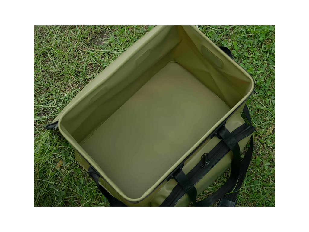 CarryAll taška Delphin NuEVA Large o rozměrech 45x30x35cm je univerzální rybářská taška vyrobená z EVA materiálu, poskytující velkorysý prostor pro uskladnění nejrůznějšího rybářského vybavení či různých nástrah a návnad. Díky použitému EVA materiálu a kvalitním svárům je taška nepromokavá, čímž dokonale ochrání obsah uvnitř i v nepříznivých povětrnostních podmínkách. Kromě nepromokavosti je tento materiál také velmi snadno omyvatelný a neabsorbuje pachy. Bez obav tak uvnitř můžete přenášet také různé tekuté potravy, dipy či boostry. Extra prostor pro drobnější příslušenství poskytuje zipovatelná kapsa na přední straně. Série tašek NuEVA je designována v kombinaci decentní barvy s logem kapra, což potěší množství příznivců kaprařiny. Pro snadný transport je taška opatřena praktickým, délkově nastavitelným popruhem na rameno, ale také dvěma popruhy do ruky. Rozměr: 45x30x35cm Rozměr přední kapsa: 35x20x6cmDoplňkové parametry