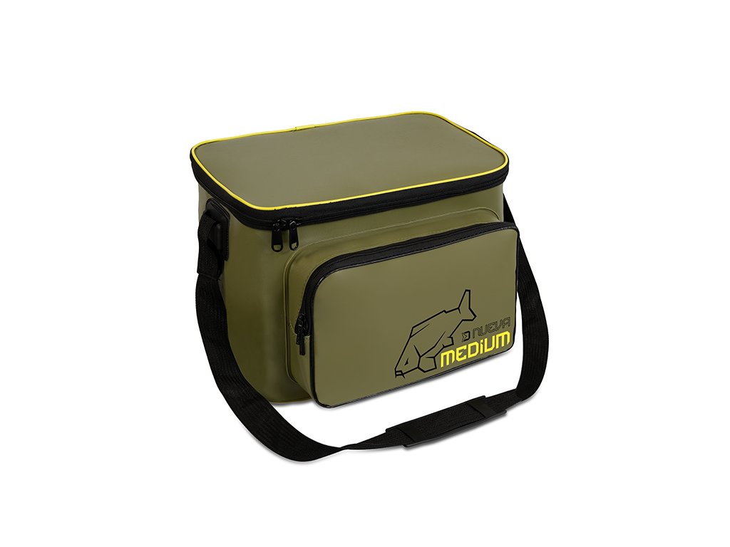 CarryAll taška Delphin NuEVA Medium o rozměrech 35x25x30cm je univerzální rybářská taška vyrobená z EVA materiálu, která poskytuje dostatečný prostor pro uskladnění nejrůznějšího rybářského vybavení či různých nástrah a návnad. Díky použitému EVA materiálu a kvalitním svárům je taška nepromokavá, čímž dokonale ochrání obsah uvnitř i v nepříznivých povětrnostních podmínkách. Kromě nepromokavosti je tento materiál také velmi snadno omyvatelný a neabsorbuje pachy. Bez obav tak uvnitř můžete přenášet také různé tekuté potravy, dipy či boostry. Extra prostor pro drobnější příslušenství poskytuje zipovatelná kapsa na přední straně. Série tašek NuEVA je designována v kombinaci decentní barvy s logem kapra, což potěší množství příznivců kaprařiny. Pro snadný transport je taška opatřena praktickým, délkově nastavitelným popruhem na rameno. Rozměr: 35x25x30cm Rozměr přední kapsa: 30x20x6cmDoplňkové parametry