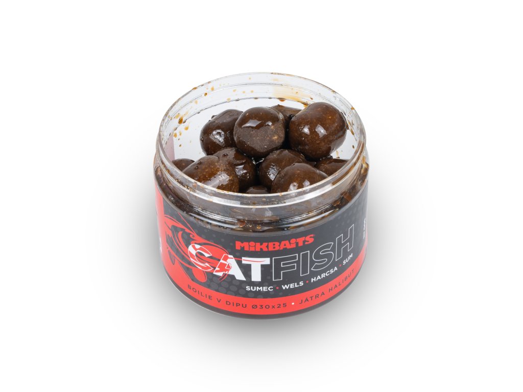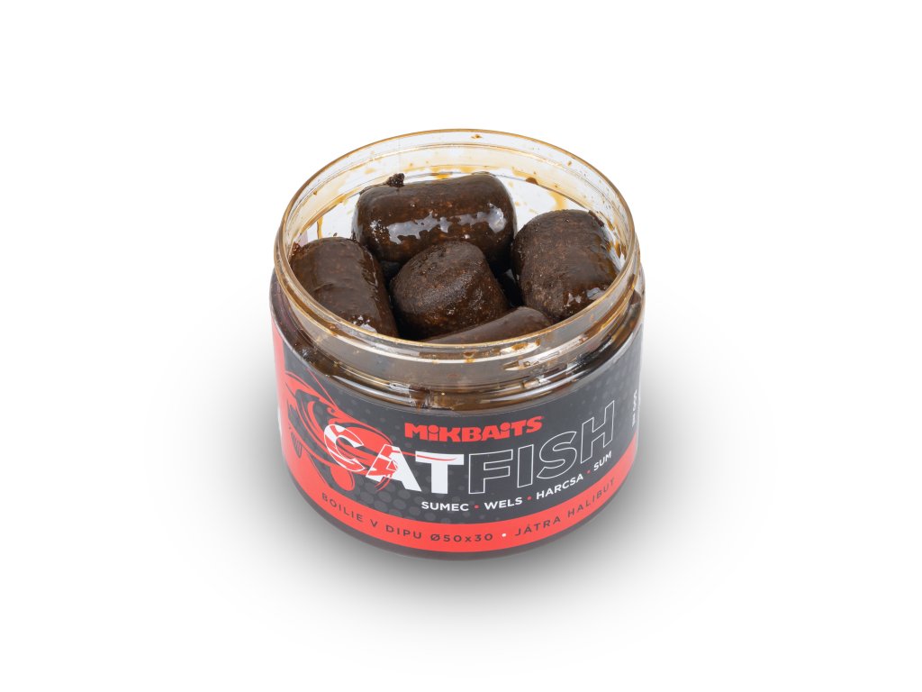 Catfish sumec řada - Játra Halibut boilie v dipu + Kód na slevu 10%: SLEVA10