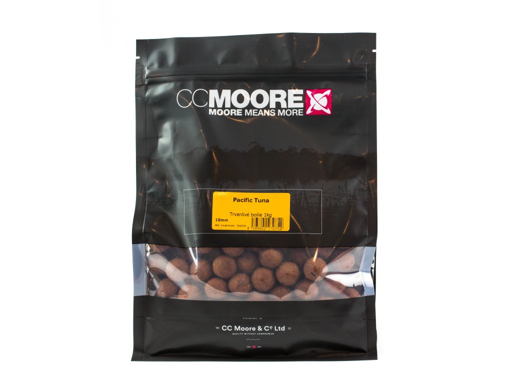 Pacific Tuna je úspěšná řada na bázi mořských produktů. CC Moore se podařilo skvěle zkombinovat tuňákový protein a extrakt s dalšími surovinami. I když se jedná o boilie na rybí bázi, má skvělé výsledky při všech teplotách vody. Při vhození do vody začíná okamžitě reagovat a uvolňovat atraktivní látky. Povrch boilie je velmi specifický, dokonale přijímá dipy boostery atd. Při testování po celé Evropě se potvrdilo, že to je doslova magnet na kapry.Doplňkové parametry