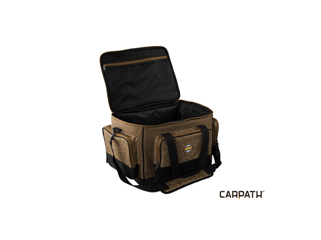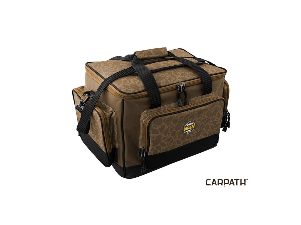 Delphin AREA je špičkově zpracovanou sérií tašek určených pro kaprový rybolov v neopakovatelném designu CARPATH. Bezchybné šití, silné zipy, ergonomické střihy. To je Delphin AREA! Carryall je praktická taška pro uložení rybářského příslušenství. Projektovaná byla s důrazem na praktičnost, trvanlivost a odolnost vůči nepříznivým povětrnostním vlivům. Taška je ze všech stran osazena 6mm polstrováním pro maximální ochranu vašeho příslušenství uvnitř. Celá taška je mimořádně kompaktní a stabilní, i když je úplně prázdná. Celá spodní část tašky je osazena vyztuženou, 5cm vysokou, nepromokavou vrstvou, která dovoluje položení tašky na mokrý povrch či dokonce do vody. Navíc je osazena 3 vnějšími zipovatelnými kapsami pro uložení dalšího rybářského příslušenství. Uvnitř najdete ještě jednu velkou síťovou kapsu. Samotný vnitřek je navržen tak, abyste do něj s lehkostí mohli ukládat další tašky série AREA. Maximální komfort dotváří mimořádně měkké polstrování popruhu pro zavěšení na rameno, či praktické rukojeti pro nošení tašky v ruce. Technické parametry XL: Rozměr tašky: 55x35x30cm Čistý rozměr vnitřního prostoru: 45x30x29cm Rozměr přední kapsy: 30x20x5cm Rozměr boční kapsy: 25x20x5cm Vnitřní síťovaná kapsa: 40x30cm Technické parametry XXL: Rozměr tašky: 60x35x36cm Čistý rozměr vnitřního prostoru: 55x29x32cm Rozměr přední kapsy: 35x25x5cm Rozměr boční kapsy: 25x25x5cm Vnitřní síťovaná kapsa: 48x29cm Kamufláž CARPATH je unikátním a patentovaným designovým vzorem, který v sobě skloubil maskovací vizuál kamufláže a siluety kaprů, které tuto kamufláž tvoří. Tento jedinečný a neopakovatelný návrh pochází kompletně z dílny značky Delphin a posouvá hranice vašeho rybářského vybavení do zcela nové dimenze.Doplňkové parametry