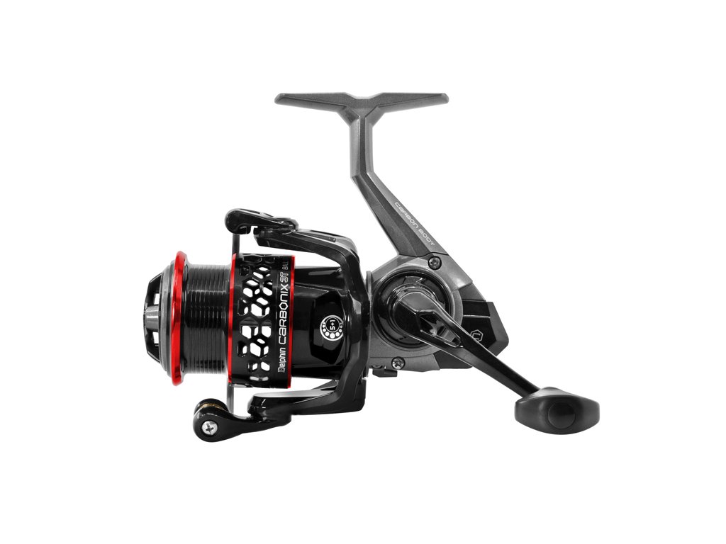 Kompaktní naviják s přední brzdou, vyznačující se vynikajícím poměrem ceny a výkonu. CARBONIX na první pohled zaujme svým inovativním provedením s jedinečným designem. Ten nespočívá jen v elegantním barevném provedení, ale zejména v konturách těla a specifickém frézování cívky. To však není všechno! Samotné tělo navijáku je vyrobeno z karbonu, což zaručuje jeho nízkou hmotnost a vysokou pevnost či odolnost vůči mechanickému poškození. O redukci hmotnosti se v tomto případě starají i odlehčené části jako cívka, rotor či klička. Právě tyto parametry řadí CARBONIX na úroveň podstatně dražších modelů. Díky svým rozměrům a třem různým velikostem je ideální na přívlač, ale také feeder či plavanou. O plynulý chod se stará spolehlivý mechanismus se šesti kuličkovými ložisky (5+1) a převodovým poměrem 5.1:1. Kovová klika je osazena pogumovaným madlem, díky čemuž je velmi příjemná na dotek a svým ergonomickým tvarem ideálně sedne mezi prsty. Ke každé velikosti navijáku lze dle potřeby dokoupit samostatné kovové cívky. Technické parametry: Model: Delphin CarboniX 1T Kapacita navijáku mm/m: 0.10/285, 0.12/198, 0.14/145 Převodový poměr: 5.1:1 Počet ložisek: 5+1 Hmotnost: 204g Model: Delphin CarboniX 2T Kapacita navijáku mm/m: 0.12/227, 0.14/167, 0.18/101 Převodový poměr: 5.1:1 Počet ložisek: 5+1 Hmotnost: 210g Model: Delphin CarboniX 3T Kapacita navijáku mm/m: 0.14/257, 0.18/156, 0.20/120 Převodový poměr: 5.1:1 Počet ložisek: 5+1 Hmotnost: 230gDoplňkové parametry