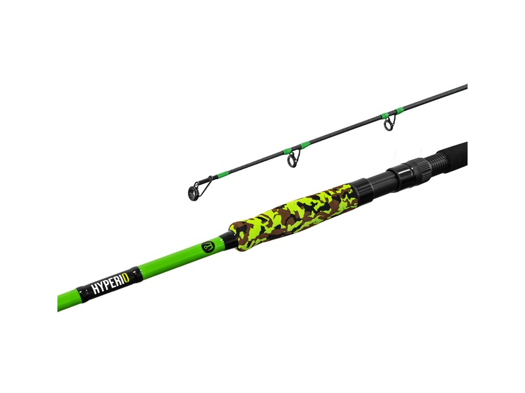 Nová generace prutu HYPERIO je zaměřena na aktivní lov sumců těžkou přívlačí ze břehu nebo z člunu. Novinka vás na první pohled zaujme svým novým a propracovaným designem. Gramáž poskočila na 120g vyztužením blanku a díky technickým inovacím přináší rovnoměrné rozdělení síly. HYPERIO představuje lehký ale silný prut, určený pro vrhání zátěží kolem 120g. Nedělá mu problém sladkovodní, ani mořský rybolov. Postaven byl totiž na vyhrávání soubojů s dravými rybami. Už při navrhování jsme dbali na výjimečně silný blank se zpevňujícím karbonovým opletem PowerWrap, který je velmi pevný a výborně pracuje při nahazování či zdolávání. Zesílená očka prutu jsou vyvázaná s vysokým důrazem na celkovou odolnost a vysoké namáhání. Výplň oček si výborně poradí jak s vlascem, tak i se šňůrou. Model: 180cm / 120g Počet dílů: 2 Průměr blanku nad rukojetí: 10,44mm Počet oček: 7 Transportní délka: 95cm Hmotnost: 196g Rukojeť: dělená, EVA pěna Délka rukojeti (od spodní části prutu po střed sedla): 43,5cm Model: 210cm / 120g Počet dílů: 2 Průměr blanku nad rukojetí: 11,50mm Počet oček: 8 Transportní délka: 111cm Hmotnost: 221g Rukojeť: dělená, EVA pěna Délka rukojeti (od spodní části prutu po střed sedla): 46,5cm Model: 240cm / 120g Počet dílů: 2 Průměr blanku nad rukojetí: 12,87mm Počet oček: 9 Transportní délka: 125cm Hmotnost: 244g Rukojeť: dělená, EVA pěna Délka rukojeti (od spodní části prutu po střed sedla): 48,5cm Model: 270cm / 120g Počet dílů: 2 Průměr blanku nad rukojetí: 13,40mm Počet oček: 10 Transportní délka: 141cm Hmotnost: 274g Rukojeť: dělená, EVA pěna Délka rukojeti (od spodní části prutu po střed sedla): 50,5cmDoplňkové parametry