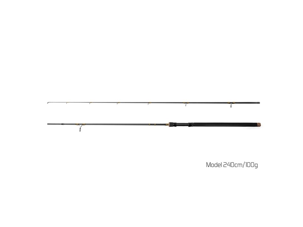 Silnější, agresivnější, rychlejší! I to by mohl být slogan tohoto, na danou kategorii až neskutečně štíhlého prutu, jehož cílovými úlovky jsou kapitální dravci jako candát, štika či sumec! Podřídili jsme tomu kromě ultra silného blanku i komfortní celopěnovou rukojeť s rubber korkovým ukončením. Blank byl ponechán celý ve své nespoutané, drsné kráse. Vinutí jednotlivých vrstev karbonu je nejen viditelné, ale na dotyk i lehko rozeznatelné. Decentní černo-zlaté zhotovení je inspirované obávaným predátorem – Murénou, po které tento prut nese i název. Pokud jste doteď hledali svého odolného spolubojovníka, který vás vždy podrží na vycházkách za velkými dravci, je tu. Prut, který se nezalekne ničeho! Murena! Technické parametry: Model: 210cm/100g Počet dílů: 2 Průměr blanku nad rukojetí: 10,20mm Počet oček: 7 Transportní délka: 110cm Hmotnost: 180g Rukojeť: EVA pena + rubber korok Délka rukojeti: (od spodní části prutu po střed sedla): 44,5cm Model: 240cm/100g Počet dílů: 2 Průměr blanku nad rukojetí: 10,78mm Počet oček: 8 Transportní délka: 125cm Hmotnost: 206g Rukojeť: EVA pena + rubber korok Délka rukojeti: (od spodní části prutu po střed sedla): 46,5cm Model: 270cm/100g Počet dílů: 2 Průměr blanku nad rukojetí: 11,8mm Počet oček: 9 Transportní délka: 139cm Hmotnost: 230g Rukojeť: EVA pěna + rubber korok Délka rukojeti: (od spodní části prutu po střed sedla): 48cm Model: 300cm/100g Počet dílů: 2 Průměr blanku nad rukojetí: 12,6mm Počet oček: 10 Transportní délka: 155cm Hmotnost: 265g Rukojeť: EVA pěna + rubber korok Délka rukojeti: (od spodní části prutu po střed sedla): 51cmDoplňkové parametry