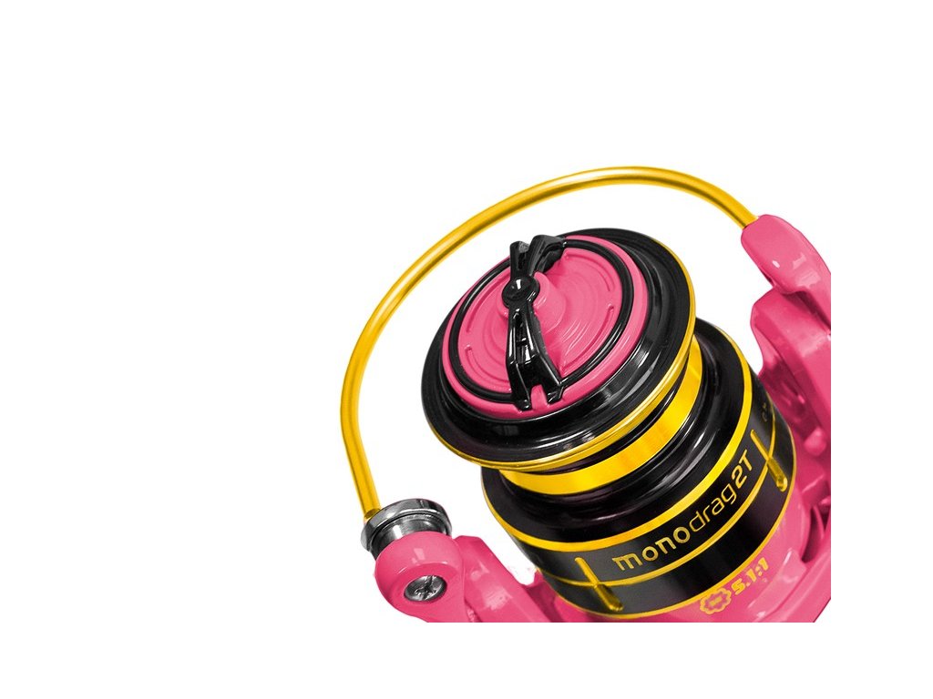 Naviják od společnosti Delphin, na který netrpělivě čekaly zejména fanynky produktů ze série QUEEN. Tak jak je charakteristické pro tuto řadu určenou něžnému pohlaví, i QUEEN MonoDRAG je nezaměnitelný díky své růžové barvě. Ta je však v tomto případě velmi pohledně kombinovaná se zlatými a černými doplňky. Samotný chod navijáku je velmi hladký a plynulý, na čemž má nepochybně největší zásluhu mechanismus s ideálním převodovým poměrem 5.1:1 a soustava 5+1 kuličkových ložisek. Pevné tělo zaručuje vynikající odolnost a dlouhou životnost navijáku. Pogumovaná rukojeť na klice dokonale sedne mezi prsty a umožňuje pohodlnou manipulaci během lovu. Výhodou je také odhozová hrana na kovové cívce, díky které budou vaše hody nejen přesnější, ale také o něco delší. Za účelem maximálně přesných hodů je možné využít také kovový klip na uchycení vlasce. Citlivá brzda disponuje dostatečně velkou silou potřebnou k zastavení unikající ryby. QUEEN MonoDRAG je vyráběn ve velikostech 2T a 3T a nepochybně bude skvostem výbavy každé rybářky. Technické parametry: Model: Delphin QUEEN MonoDRAG 2T Kapacita navijáku mm / m: 0.14 / 200, 0.16 / 155, 0.18 / 130 Převodový poměr: 5.1:1 Počet ložisek: 5+1 Hmotnost: 250g Model: Delphin QUEEN MonoDRAG 3T Kapacita navijáku mm / m: Převodový poměr: 5.1:1 Počet ložisek: 5+1 Hmotnost: 284gDoplňkové parametry
