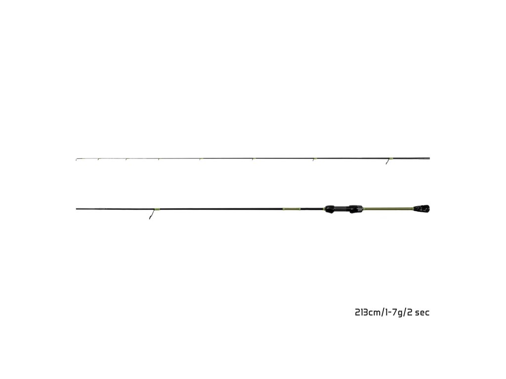 Neodolatelně štíhlý blank, velmi nízká hmotnost a kombinovaný lesklý design s matnými prvky. Díky těmto vlastnostem si už nikdy nespletete prut reaCtion, který dokonale doplňuje rodinu UL přívlačových prutů značky Delphin. Název prutu Delphin reaCtion dokonale vystihuje vlastnosti prutu. Úplný kontakt s nástrahou Vám zaručí, že nepromeškáte ani jeden záběr. Postaven je na 24T karbonu, který se vyznačuje nízkou hmotností a okamžitým přenosem vibrací po celé délce blanku. Kónus je postaven tak, aby byla akce plně parabolická. Tato akce v UL přívlači dovoluje použít nejtenčí vlasce a šňůry. Nápor na vlasec během zasekávání se tak nepřenáší okamžitě, ale postupně – přesně opačně než to je u prutů s typicky špičkovou akcí. Akce prutu zároveň dovoluje přesnější nahazování, které je právě vyžadováno při lovu na ultralightové nástrahy. Rukojeť byla zkrácena tak, aby dovolovala pohodlné nahazování i ve stísněných podmínkách. Citlivost blanku je navýšena vlepenou karbonovou špičkou, jejíž citlivost využijete hlavně při lovu na maličké pryžové nástrahy s mikro jigy. Prut Delphin reaCtion je plně parabolický, ultra lehký a extrémně citlivý prut. Ideální volba pro UL techniku. Technické parametry: Model: 183 cm /0,5-6g/ Počet dílů: 2 Průměr blanku nad rukojetí: 6,8 mm Počet oček: 8 Transportní délka: 94,5 cm Hmotnost: 76g Rukojeť: dělená, EVA pěna Délka rukojeti (od spodní části prutu po střed sedla): 26,5 cm Model: 213 cm /1-7g/ Počet dílů: 2 Průměr blanku nad rukojetí: 7,7 mm Počet oček: 9 Transportní délka: 109,5 cm Hmotnost: 86g Rukojeť: dělená, EVA pěna Délka rukojeti (od spodní části prutu po střed sedla): 28 cmDoplňkové parametry