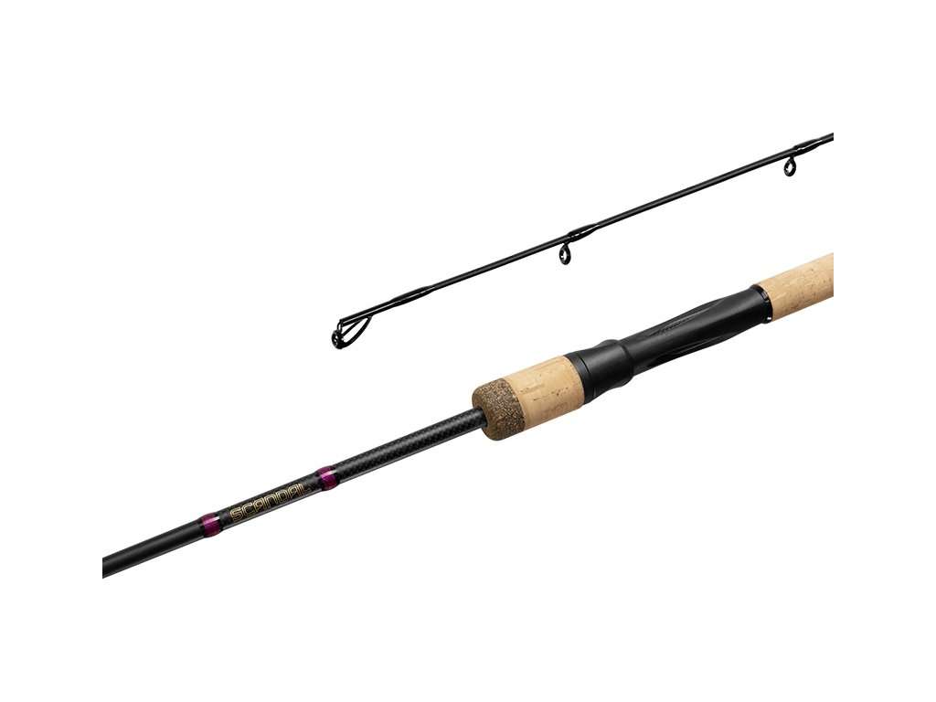 Je štíhlý, lehký a perfektně vyvážený prut pro všechny milovníky lovu dravých ryb pomocí přívlače. Díky rychlé akci a vysoké citlivosti je prut obzvlášť vhodný pro lov pomocí měkkých umělých nástrah formou jiggingu. Prut je vyhotoven ve třech velikostech, a tím je vhodný pro použití široké škály umělých nástrah a lovených ryb. V nejtěžší verzi je vhodný pro lov candátů a štik, u nejlehčí verze si zase naplno vychutnáte lov okounů a pstruhů. Blank vyrobený z 30T karbonu se vyznačuje rychlou akcí a zároveň dostatečnou silou pro přesné a daleké nahazování. Díky použití moderní technologie výroby blanku jsme dokázali vytvořit velmi citlivou špičku, která umožňuje skrze nástrahu „cítit“ všechny nerovnosti dna. Vysokou citlivost oceníte i při detekci nejjemnějších záběrů, které se přes tubulární špičku okamžitě přenášejí až do sedla navijáku a ruce lovce. Blank prutu je osazen kvalitními SeaGuide Zirconia očky, která jsou specifická nízkou hmotností a vysokou odolností a pevností. Očka jsou navíc optimálně rozmístěna pro maximální vzdálenost nahazování a umožňují dokonalé rozmístění tlaku na blank prutu. Ergonomicky tvarované sedlo je velice pohodlné a umožňuje celodenní výpravy bez zbytečné námahy. U tohoto prutu jsme použili jako materiál rukojeti vysoce kvalitní korek, který potěší zejména milovníky klasického designu. Scandal je kvalitní prut za rozumnou cenu, který ocení každý správný vláčkař, ať už je to začátečník nebo profesionál. Technické parametry: Model: Delphin SCANDAL SPIN | 200cm/10g Počet dílů: 2 Průměr blanku nad rukojetí: 9,1mm Počet oček: 8 Transportní délka: 104cm Hmotnost: 98g Rukojeť: Cork Délka rukojeti (od spodní části po střed sedla): 29,5cm Model: Delphin SCANDAL SPIN | 210cm/15g Počet dílů: 2 Průměr blanku nad rukojetí: 9,4mm Počet oček: 9 Transportní délka: 109cm Hmotnost: 108g Rukojeť: Cork Délka rukojeti (od spodní části po střed sedla): 30,5cm Model: Delphin SCANDAL SPIN | 220cm/25g Počet dílů: 2 Průměr blanku nad rukojetí: 9,6mm Počet oček: 9 Transportní délka: 115cm Hmotnost: 120g Rukojeť: Cork Délka rukojeti (od spodní části po střed sedla): 31,5cm Model: Delphin SCANDAL SPIN | 250cm/30g Počet dílů: 2 Průměr blanku nad rukojetí: 10,6mm Počet oček: 8 Transportní délka: 129cm Hmotnost: 148g Rukojeť: Cork Délka rukojeti (od spodní části po střed sedla): 33,5cmDoplňkové parametry