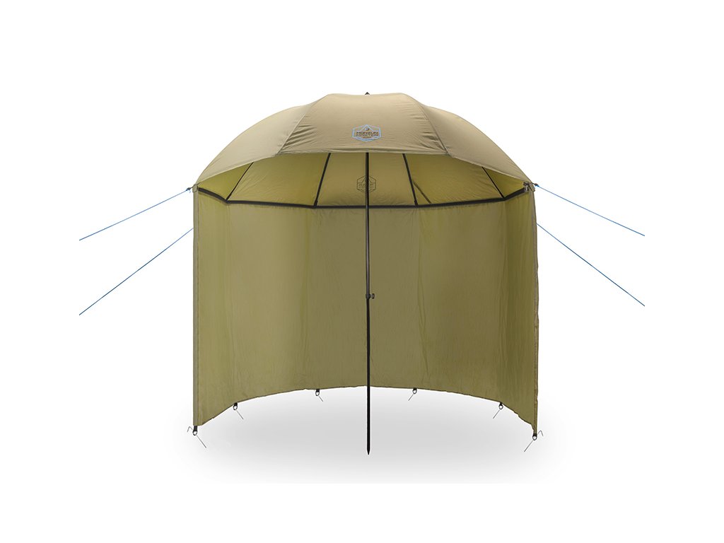 Prémiový deštník Delphin MONZUN Master s 3/4 bočnicí oceníte hlavně při výpravách, kde počasí není úplně ideální. Ochrání před nepříjemným sluncem, ranní rosou ale i deštěm, který umí intenzitou překvapit zejména v letních měsících. Čtyři ukotvovací lana poslouží výborně při silnějším větru. Světle modrá barva lan byla navržena záměrně tak, aby nedocházelo k zakopnutí při snížené viditelnosti. Švy deštníku jsou za horká kompletně podlepeny voděodolnou páskou pro zajištění 100% nepromokavosti i při velkém dešti. K dispozici je boční tříčtvrteční prodloužená stěna, která se upevňuje pomocí kvalitního zipu kolem kopule. Spodní část boční stěny je osazena úchyty pro připevnění k zemi pomocí zajišťovacích kolíků (10 kolíků je součástí balení). Zipy jsou plně překryty kusem látky pro zajištění jejich nepromokavosti. Deštník disponuje kloubem pro nastavení sklonu kopule, díky čemuž se umíte přizpůsobit slunečním paprskům ale i větru. Nastavitelná výška usnadní upevnění i v členitějším terénu nebo, podle potřeby k určení výšky, abyste se pod deštníkem cítili komfortně. Delphin MONZUN je exkluzivním deštníkem pro každý den! Technické parametry: Max.výška deštníku (až po vrch kopule):2,2m Max.výška deštníku (s upevněnou boční stěnou):1,9m Průměr přes kopuli: 250cmDoplňkové parametry