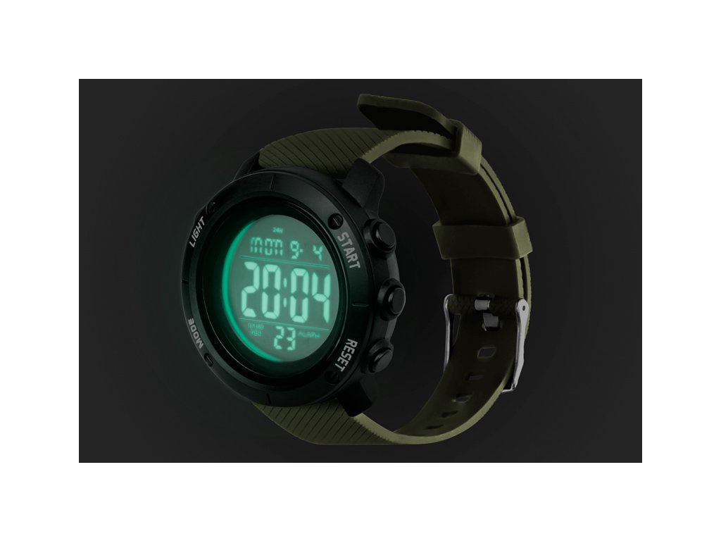 Delphin WADER jsou digitální hodinky pro každého, kdo chce mít svůj čas vždy pod kontrolou. Svým sportovním designem se ideálně hodí aktivním lidem, ať už jde o rybáře, myslivce, turisty či sportovce. Kromě běžné indikace času disponují několika skvělými funkcemi jako budík, stopky, volitelný 12 a 24H formát či duální čas. Také je možné pomocí tlačítka Light podsvícení LCD displeje, díky čemuž neztratíte pojem o čase ani během nočního rybolovu, či jiných aktivit. Gumová řemínka jsou na dotek velmi příjemné a také jsou délkově nastavitelné v široké škále. To zaručuje, že sednou na zápěstí o jakékoliv tloušťce. Řemínky jsou navržena v tmavě zelené barvě čímž ideálně zapadnou do přírodního prostředí, aniž by byly rušivým elementem. Samotné hodinky jsou vyrobeny z velmi pevného černého materiálu, který se vyznačuje excelentní odolností vůči mechanickému poškození. Podle mezinárodní stupnice je tento model označen jako voděodolný do 50m. Toto označení splňuje všechny náležitosti hodinek, které mohou být vystaveny tekoucí vodě (například sprchování) či pózování s úlovkem ve vodě, kdy absolutně nevadí jejich ponořování pod vodní hladinu i na delší dobu. Delphin WADER jsou jednoduše ideální stylový doplněk s nadupanými funkcemi, díky kterému budete mít vždy dokonalý přehled o čase. Technické parametry: Průměr ciferníku: 45mm Baterie: CR2032Doplňkové parametry