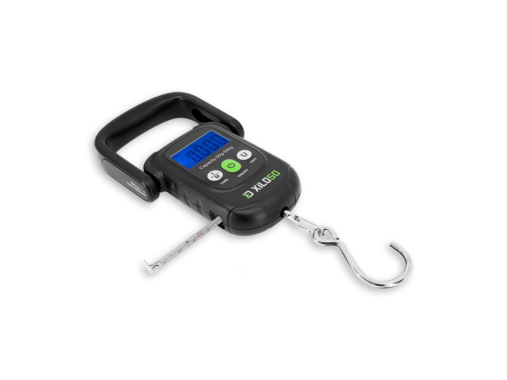 Digitální váha, umožňující měření hmotnosti v rozmezí od 50g až do 50kg s vysokou přesností. XILO má jednoduché ovládání pomocí tří tlačítek. Zapnutí, resp. vypnutí váhy probíhá zatlačením zeleného tlačítka ON/OFF. Krátkými stisky tlačítka U (UNIT) lze měnit jednotky hmotnosti (kg, lbs, JIN, oz), zobrazované na displeji. Funkce TARE umožňuje zavěsit na hák například vážící vak, následně zmáčknout TARE a naměřené hodnoty se vynulují. To znamená, že když následně vložíte do vaku úlovek, zobrazí se jeho čistá váha. Kromě těchto funkcí váha disponuje podsvíceným displejem a indikací slabé baterie či přetížení. XILO je navíc vybavena 100 cm samonavíjecím pásmem, čímž v jednom produktu dostanete kromě váhy také metr. Výhodou je také velmi pevná, masivní rukojeť pro uchopení, kterou je navíc možné zasunout tak, aby měla váha co nejkompaktnější rozměry. Technické parametry: Výška (tělo váhy): 10,3cm Výška (s rukojetí a hákem): 23cm Šířka: 9cm Kapacita váhy: 50kg Hmotnost: 160g Napájení: 2x AAA baterie Baterie jsou součástí balení zdarma!Doplňkové parametry
