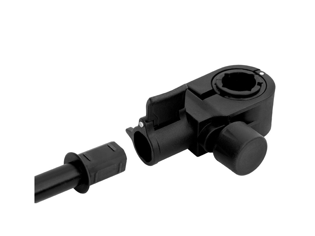 Univerzální feederový držák ve tvaru písmene L, vhodný pro použití například v kombinaci s držákem prutů, případně jako držák feederové síťky. Také jej lze použít jako samostatný zadní držák prutu. Disponuje úchytem s variabilním průměrem 25, 30 a 36 mm díky čemuž pasuje téměř na všechny standardně vyráběná křesla na trhu. Výhoda úchytu spočívá také v tom, že je opatřen klipem, díky kterému není nutné pokaždé sundávat z křesla celý systém. Jednoduše stačí odjistit klip a vytáhnout držák, zatímco úchyt zůstává připraven na křesle pro další lov. Devizou tohoto úchytu je také to, že je stejný u několika držáků ze série ATOMA. Díky tomu je možné držáky mezi sebou podle potřeby měnit bez nutnosti odmontování celého úchytu. Držák disponuje standardním závitem, ale také spojovacím konektorem, na kterém je závit s větším průměrem. Díky tomu k tomuto držáku "sedne" každý standardně vyráběný držák prutů, případně síťka. Technické parametry: Celková délka: 230mm Průměr: 16mm Průměr úchytu: 25,30,36mmDoplňkové parametry