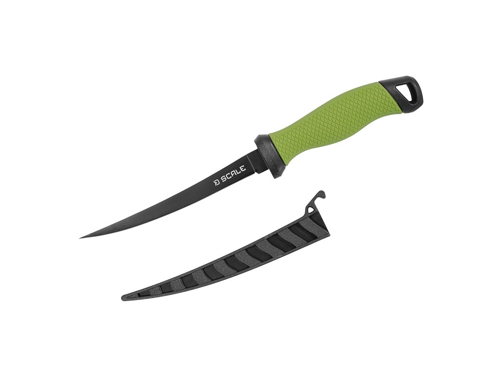 Staňte se šéfkuchařem na rybách či při pobytu v přírodě s vysoce kvalitním filetovacím nožem Delphin SCALE. Ostrá čepel z nerezavějící oceli umožňuje precizní a efektivní zpracování masa, ryb, zeleniny a jiných surovin bez zbytečné námahy. Zúženou špičku a pružnost čepele oceníte zejména při filetování či vykosťování a speciální tvar čepele zase při krájení a porcování. Čepel z vysoce kvalitní oceli si zachovává vysokou ostrost i při mnohonásobném používání. Nůž je opatřen měkkou a velmi příjemnou ergonomickou rukojetí s protiskluzovým povrchem, který navíc připomíná tvar šupin, což nepochybně potěší množství rybářů. Čepel je chráněna ochranný plastovým pouzdrem pro bezpečné skladování a transport. Délka nože: 32cm Délka čepele: 17,5cmDoplňkové parametry