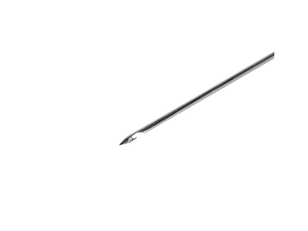 Delphin SLIM Safety je velmi tenká feederová jehla určená především k upevnění nástrahy na vlas pod háčkem. Díky tenké kovové části s ostrým hrotem a háčkem je pomocí této jehly možné bezproblémové navlékání drobných nástrah. Kovová část s délkou 40mm je navzdory svému minimálnímu průměru dostatečně pevná a pružná. Své uplatnění si najde také při kaprařině, a to zejména při použití boilie s velmi malým průměrem, které by při použití klasické jehly s velkou pravděpodobností prasklo. Plastová tmavě růžová rukojeť s efektním černým logem umožňuje pohodlnou manipulaci s jehlou. Díky výrazné barvě bude navíc vždy dobře viditelná ve vaší rybářské výbavě. Technické parametry: Jehla Delphin SLIM Safety Celková délka: 80mm Délka jehly: 40mm Rukojeť: růžováDoplňkové parametry