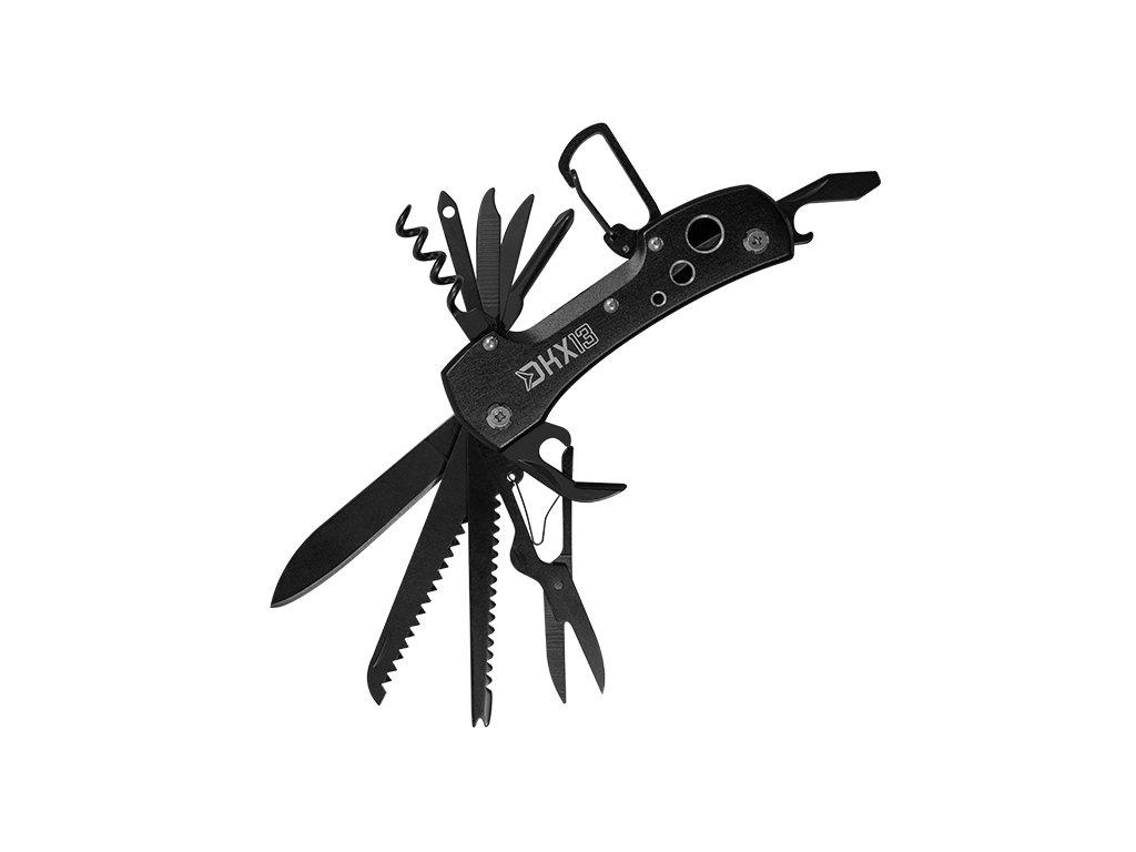 Kompaktní, elegantní ale hlavně užitečný, to jsou přesně ty vlastnosti, které vystihují kapesní nožík KNIFEX13. Číslice 13 v názvu produktu znamená počet funkcí, kterými disponuje. Kromě klasického nožíku KNIFEX13 obsahuje například pilku, otvírák na konzervy a láhve, pilník na nehty, nůžky, plochý a křížový šroubovák a mnoho dalších. Také je osazen praktickou skobou, pro umístění na opasek, tašku nebo kdekoli tam, kde bude vždy po ruce. Každý z těchto nástrojů se po vyklopení automaticky zajistí, avšak je třeba dbát opatrnosti při používání a všechny nástroje je třeba používat ve směru vyklápění nástroje. S funkcemi, které poskytuje kapesní nožík si hravě poradíte s přípravou jídla, odstřihnutím rybářského vlasce či odřezáním nežádoucí větve. Je tedy vhodný pro všechny rybáře, outdoorové nadšence, ale i pravé domácí kutily. Je vyroben z kvalitní nerezavějící oceli, což zaručuje jeho dlouhou životnost.Doplňkové parametry