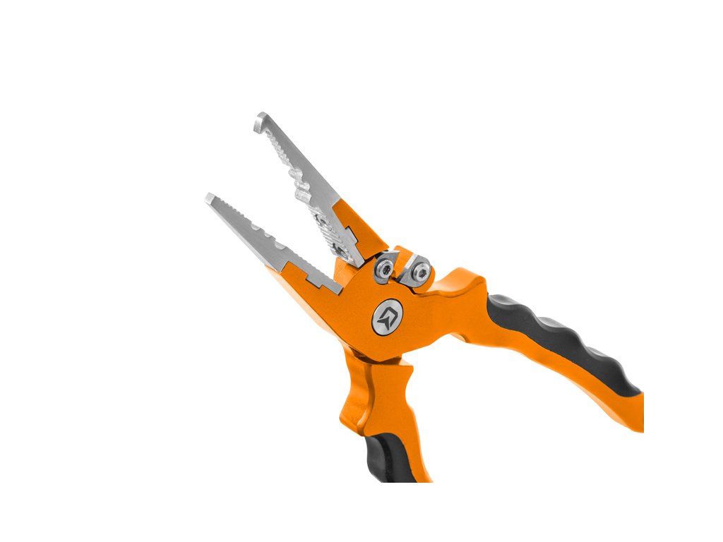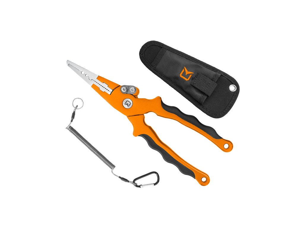 Do detailů propracované multifunkční kleště, které si bez problémů poradí s otevíráním kroužků, mačkáním krimpovacích svorek či stříháním různých vlasců a šňůr. Kromě toho mají dostatečně dlouhé čelisti na vybírání háčků z tlam dravých ryb. Jsou vyrobeny z nerezové oceli a na obou rukojetích se nachází protiskluzový gumový povrch, díky kterému se výborně drží v ruce. Kleště SpinSET jsou dodávány s praktickým černým pouzdrem, které lze snadno upevnit na opasek. Také disponují natahovacím lankem s karabinou na konci. Praktické kleště určené i pro ty nejnáročnější příznivce přívlače, to je Delphin SpinSET. Technické parametry: Celková délka: 16,5cmDoplňkové parametry