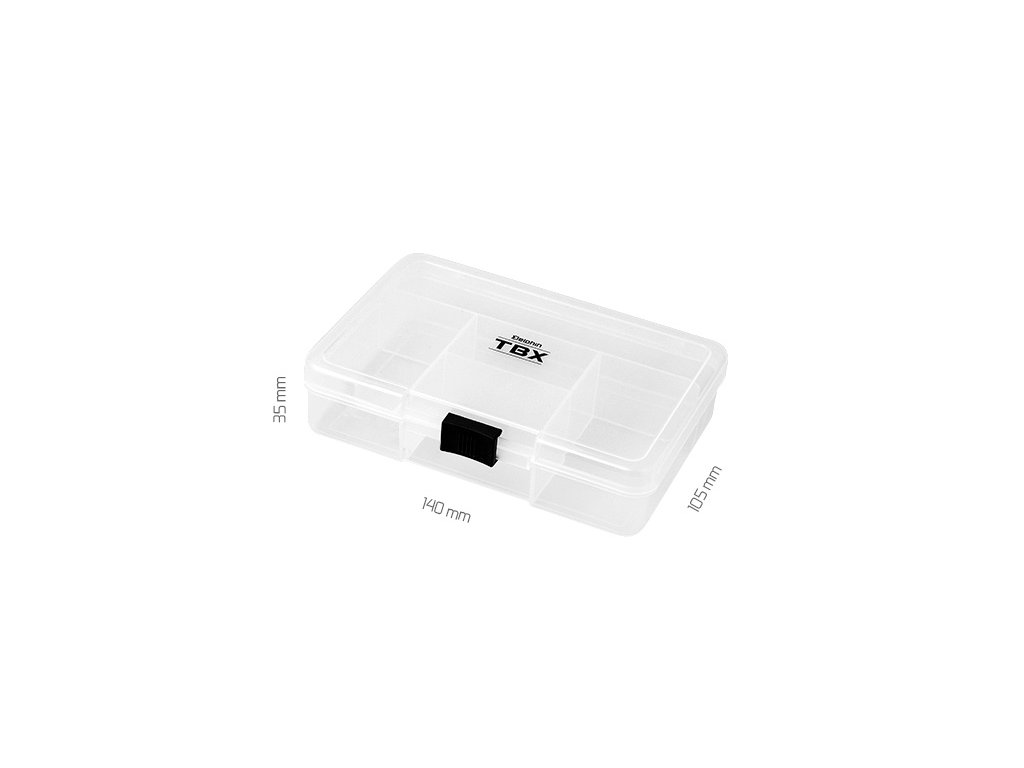 TBX Duo 355-16P Clip je multifunkční krabička určená k uložení woblerů a rybářského příslušenství. Vyrobena je z transparentního plastu, takže máte vždy přehled o uložených věcech uvnitř krabičky. DUO znamená dva oddělené úložné prostory, a to jeden z vrchní a druhý ze spodní části s důmyslným otevíráním. Vybavená je praktickými externími klipy z černého plastu. Má zabudovanou skladatelnou ručku pro snadnější transport. Technické parametry: Rozměr: 355x231x60mm Počet pevných přihrádek: 16 Rozměr přihrádky: 3,5x21,9x5,5cm Počet vkladatelných příčníků: 0Doplňkové parametry