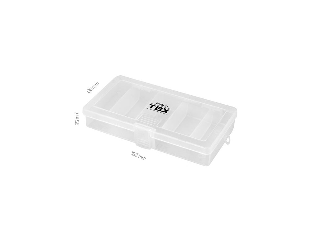 TBX ONE je rada multifunkčných krabičiek určených na uloženie rybárskeho príslušenstva. Vyrobené sú z transparentného plastu, takže máte vždy dokonalý prehľad o uložených veciach vo vnútri krabičky. Rada TXB ONE je vybavená praktickými klipmi z transparentného plastu. Technické parametre: Rozmer: 162x86x35mm Počet pevných priehradiek: 5 Rozmer priehradky: 8x3,1x3,0cm Počet vkladateľných priečinkov: 0Doplňkové parametry