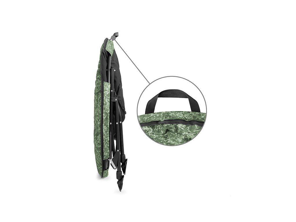 Delphin YOGEEN TeleLUX posouvá úroveň komfortu u vody opět o výrazný krok dále. Základem pro model TeleLUX se stalo dobře známé a oblíbené křeslo YOGEEN. Tentokrát ovšem přichází s novou konstrukcí a několika dalšími vylepšeními. Jednu z hlavních výhod tohoto křesla najdeme v oblasti nohou, které jsou plně nastavitelné. Každou z noh si můžete individuálně vysunout podle vašich potřeb a podle členitosti terénu. Díky širokým patkám s kloubovým uchycením lze křeslo postavit i v nerovném terénu či na bahnitém podkladu. Po bocích se nacházejí zajišťovací klipy, které zabrání nechtěnému složení křesla během sezení. Skládací mechanismus je navržen tak, aby se křeslo snadno rozkládalo a aby si zachovalo během transportu co možná nejkompaktnější rozměry. Povrch matrace je kompletně tvořen odolnou 600D látkou, potištěnou patentovanou C2G kamufláží. O jedinečné pohodlí při sezení se stará extra hrubá a měkká výplň uvnitř a po obvodu celé matrace. U série křesel C2G jsme přinesli i inovace, zaměřené na zjednodušení transportu. Velkou výhodou je rukojeť ve spodní části křesla, umožňující snadné přenášení. Technické parametry: Rozměry sedáku: 60x53cm Výška zádové opěrky: 58 cm Výška sedáku: 35cm Hmotnost: 7kg Přepravní rozměr: 93x93x13cm Nosnost: 150kg Nosnost křesla/lehátka je velmi komplexní otázka. Odpověď je ovlivněna mnoha faktory, jako například rovinatost a stabilita podkladu, na kterém křeslo/lehátko rozkládáme a také samotné fyzické parametry člověka, který do něj sedá. Statické/nehybné zatížení bývá vždy vyšší, než namáhání dynamické (při sedání uživatele, z jaké výšky a jak plynule si sedá). Zjednodušeně lze uvést, že v ideálním případě je nosnost křesla/lehátka YOGEEN TeleLUX přibližně 150 kg. Stylová patentovaná kamufláž z dílny značky Delphin pod označením C2G má mnoho podob a úhlů pohledu. Přesně tak i její název, který můžeme volně přeložit jako Carpath 2. generace, což přímo odkazuje na jejího předchůdce, ale můžeme jej číst i jako Carpath to Green, tedy přechod myšlenky Carpathu do zelené barvy. Její jedinečnost a nezaměnitelnost spočívá v prvcích, ze kterých je vytvořena. Na první dojem jde o kamufláž tvořenou třemi různými odstíny zelené. Všechno se však změní při detailnějším pohledu, kdy si všimnete siluety kaprů, komponent kaprařské montáže a log značky Delphin spolu s označením C2G. Díky tomuto neopakovatelnému provedení se vaše rybářská výbava okamžitě stane jedinečnou a maximálně originální.Doplňkové parametry