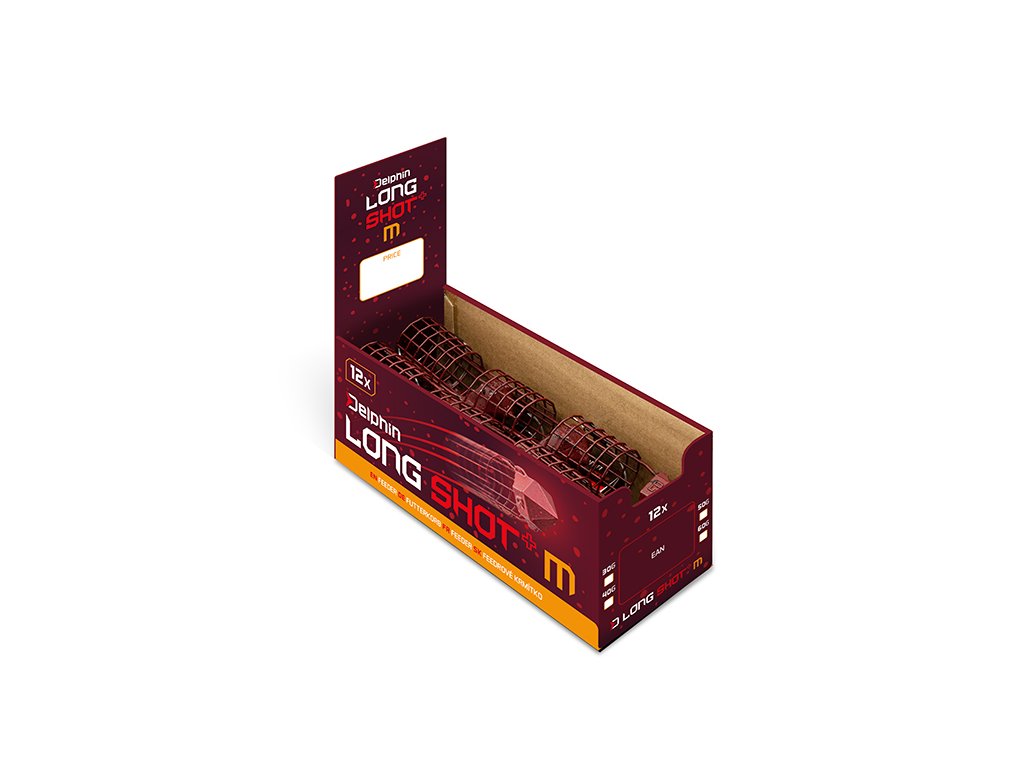 Daleké hody s tímto krmítkem už nebudou problém. Longshot+ jsme vyvinuli speciálně pro tento účel. Závaží má tvar zahroceného šestiúhelníku, což napomáhá tomu, aby krmítko zůstalo po dopadu na dně stabilně ležet a neotáčelo se. Jeho aerodynamický tvar, boční křídla a umístění ve spodní části napomáhají prodloužení hodů a stabilnímu letu. Košík je oválného tvaru a je vyroben z pevného drátu, který zamezuje jeho promáčknutí během plnění. Prostor mezi závažím a košíkem umožňuje lepší zatlačení krmné směsi pomocí prstů. Povrchová úprava produktu je matná, což zabraňuje odleskům pod vodní hladinou. Ve vrchní části se nachází extra pevné zakrimpované ramínko, které slouží k upevnění na feederovou montáž. Technické partametry: Rozměr košíku: 25x30mm PROTECTED DESIGN - Tento produkt byl kompletně navržen designéry značky Delphin. Jeho design a technické řešení jsou natolik unikátní, že je registrován a chráněn na území celé Evropské unie.Doplňkové parametry