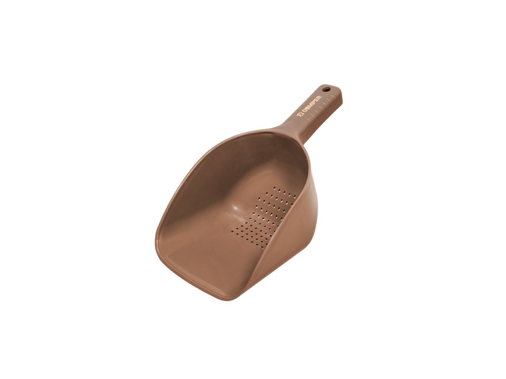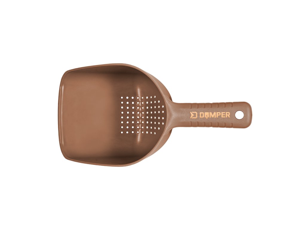 Praktický pomocník při přípravě krmení a samotném zakrmování. Lopatka DUMPER je kompletně vyrobena z pevného, velmi odolného plastu, který je navíc velmi snadno omyvatelný. Masivní plastová rukojeť dobře padne do ruky a usnadňuje nabírání a následné zakrmování. Delphin DUMPER je dostupná ve třech provedeních. Lopatka s velkým nabíracím objemem, která pojme jedním nabráním značné množství krmení. Na rozdíl od lopatek s označením Full, je vyhotovena s dírami. Díky tomu je vhodná zejména v případech, kdy si nepřejete, aby se tekutina obsažená v krmení dostávala při zakrmování do vody, resp. v případech, kdy je třeba odseparovat tekutou složku krmení od pevné. Technické parametry: Celková délka s rukojetí: 30 cm Rozměr naběračky: 20x14 cm Hmotnost: 160 gDoplňkové parametry