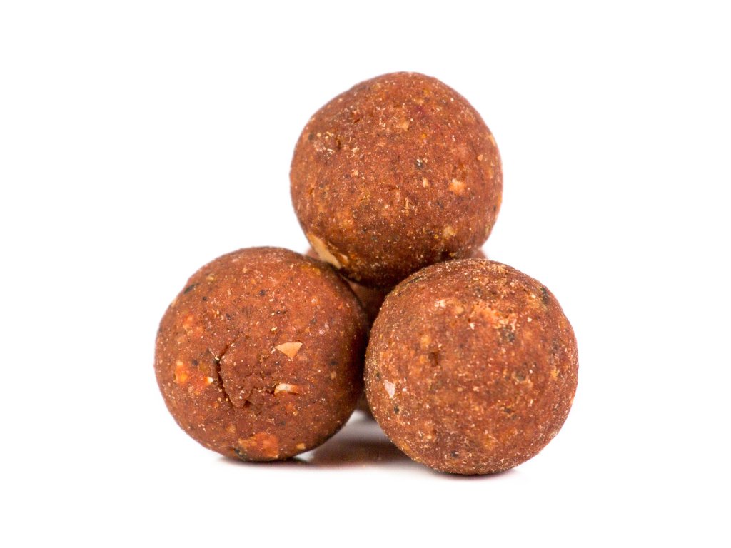 Krvavý huňáček Jahoda exklusive je nádherně vonící boilie, které však má zároveň silný základ v rybích moučkách, játrech a dalších živočišných přísadách. V kombinaci s úžasnou jahodovou esencí a kořeněnými potravami na bázi Red pepperu vytváří zcela neobvyklé boilie a úplně jiný typ „Jahody“, než nabízí většina firem. I proto je toto boilie, které se dá použít od brzkého jara do pozdního podzimu, tak účinné. Složení – rybí a enzymatické rybí moučky 30%, ptačí zoby 15%, mléčné proteiny 9%, objemové přísady 36%, atraktory 8%, extrakty 2%, Ultra esence, tekuté potravy, tekuté játrové extrakty, chuťové stimulátory, esenciální oleje, tekutý prezervativ, čerstvá vejce.Doplňkové parametry