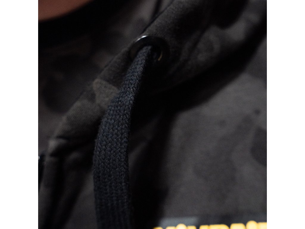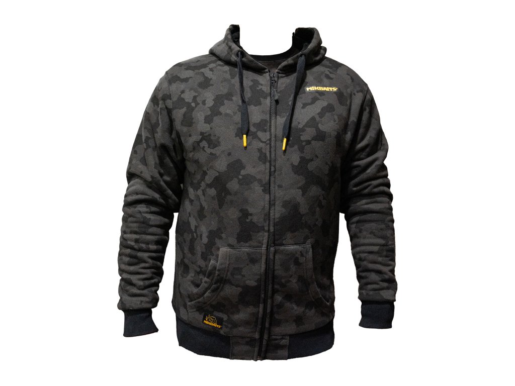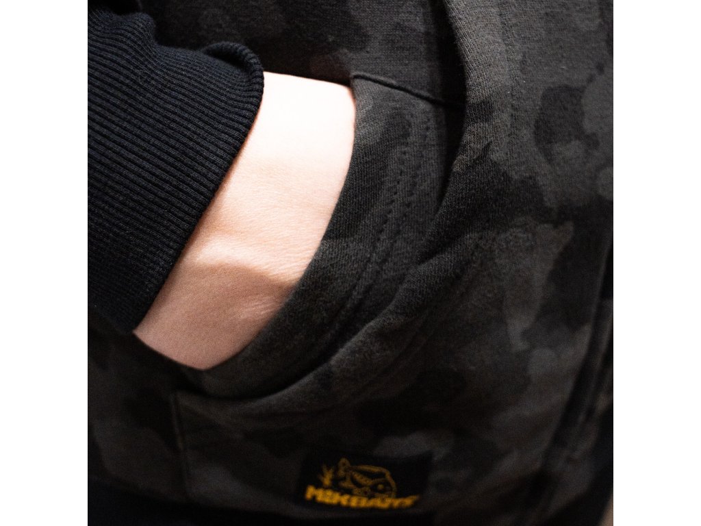 Bunda Mikbaits Black Camou Sherpa v originálním černém maskáči je nejen stylová, ale i funkční a velmi příjemná na nošení. Je to něco mezi teplou silnou mikinou a bundou. Silná gramáž 290g/m2 v chladnu příjemně hřeje, vzhledem k výborné prodyšnosti bude vám však v ní příjemně i při teplých večerech. Bunda má silný kovový zip, kapuci se stahováním, dvě velké kapsy + jednu menší na telefon, stahovací úplety jak na rukávech, tak i v pase. Materiál 70% bavlna a 30% polyester zaručuje komfort, dlouhou životnost a optimální vlastnosti.Doplňkové parametry