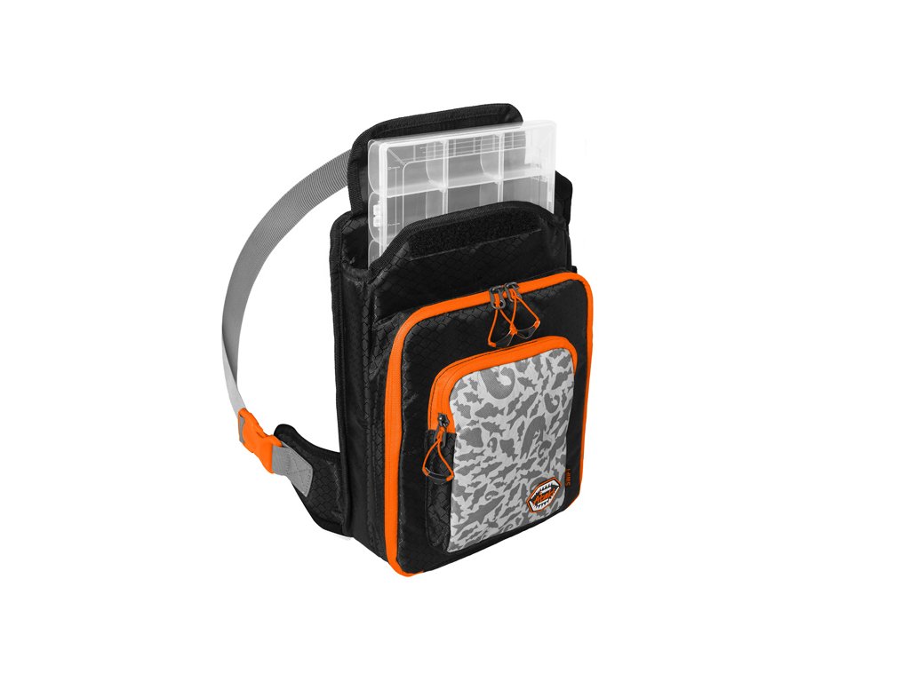 Crossbody Delphin ATAK! Swift je ideální pomocník kompaktních rozměrů učený pro vyznavače lovu na přívlač. Její velkou výhodou je, že si ji při výměně nástrahy můžete jednoduše otočit dopředu a vybrat z ní vše potřebné. Model Swift se skládá z jedné velké kapsy na suchý zip, která obsahuje jednu plastovou krabici s vyjímatelnými vnitřními příčkami. Ta je součástí tašky. Další menší kapsa na zip je určena pro uložení nástrah. Je navržena tak, aby si z ní mohl rybář pohodlně vybrat to, co potřebuje. Kapsu je možné otevřít pouze do určité polohy, a proto je i na obou stranách v rozích našitá látka, která brání vypadnutí nástrah z kapsy. Na spodní části kapsy se nachází magnet, který dokonale drží vaše příslušenství na místě. Jedna strana kapsy je opatřena silnější vrstvou profilované EVA pěny, určené pro zapichování woblerů, třpytek, plandavek nebo jigů. Na vnitřní straně se nachází také jedna malá kapsa na zip, kde je možné uložit v obalech obratlíky, karabinky, háčky apod. Nejmenší kapsa v přední části, je určena pro odložení rybářského příslušenství jako např. peán, kleště a jiné. Na zadní straně se nachází polstrování oranžové barvy, které barevně doplňují i ??zipy v téže barvě. Ramenní popruh je černé barvy a je osazen oranžovým plastovým klipem. Crossbody je vybavena kvalitními zipy oranžové barvy. Zipy jsou vybaveny plastovými taháčky na oranžovém popruhu, který je na konci rozšířený, a proto je možné ho rychle uchopit. Doplňky oranžové barvy umožňují rybáři, aby byla taška dobře viditelná i za šera a věděl ji okamžitě najít. Crossbody je ušitá z lehké, ale přitom odolné látky černé barvy. Právě díky jejímu důmyslnému řešení a kvalitnímu zpracování, získala naše crossbody taška ATAK! Swift, cenu Grand Prix na rybářském veletrhu For Fishing 2020 v kategorii: Technika rybolovu přívlač. Technické parametry: Rozměr tašky: 25x35x13cm Rozměr přední kapsa velké: 25x29cm Rozměr boční kapsa malé: 14x20cm Rozměr krabice: 27x 18 x 4cm Počet přihrádek: 6-18 Možnost náhradní krabice: TBX One 275 - 1P Clip WP, TBX One 275 - 3P Clip WP, TBX One 275 - 5P Clip, TBX One 276 - 16P Clip, TBX One 273 - 5P ClipDoplňkové parametry