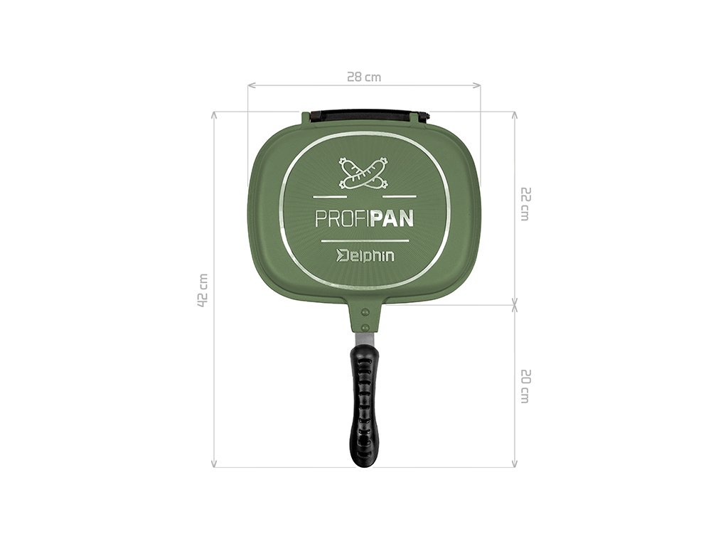 ProfiPAN je oboustranná, uzavíratelná pánev, která vám umožní přípravu nejrůznějších jídel, ať už se nacházíte na rybách, turistice, nebo jen kempujete v přírodě s přáteli. Díky magnetu na rukojeti jednotlivé poloviny po uzavření výborně drží spolu a pánev tak můžete během přípravy pokrmu libovolně obracet. O dokonalou těsnost se přitom stará obvodové těsnění odolné vysokým teplotám. Jednoznačně největší výhodu uzavřené pánve je fakt, že teplo se uvnitř mnohem rychleji akumuluje a během vaření neuniká z pánve ven. Díky tomu je příprava jídla v přírodě mnohem rychlejší a jednodušší. Základ pánve tvoří hliník s nepřilnavou povrchovou úpravou, která maximálně redukuje připáleniny během vaření, grilování či smažení. Takový povrch je navíc velmi snadno omyvatelný a odolný vůči mechanickému poškození. ProfiPAN je dodávána s náhradním těsněním v základě, přičemž v případě potřeby je možné dokoupit další vyměnitelné těsnění. Technické parametry: Vnější rozměry pánve: 28cm x 22cm x 7cm Vnitřní rozměry pánve: 26cm x 20cm Délka rukojeti: 20cm Celkové rozměry s rukojetí: 28cm x 42cm x 7cmDoplňkové parametry
