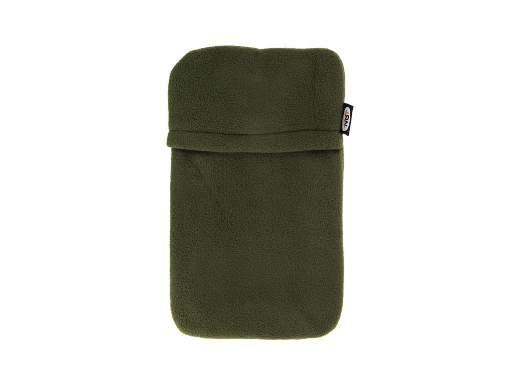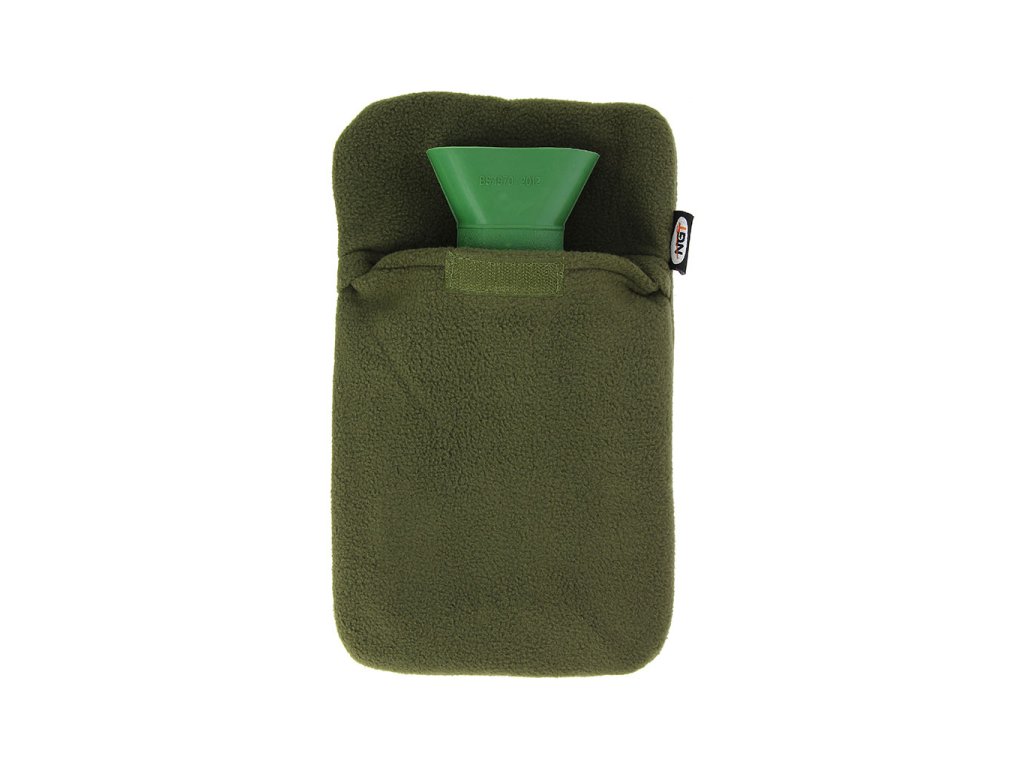 Kompaktní litrová láhev na horkou vodu s khaki fleece prošívaným obalem, která nabízí příjemné zahřátí a teplo běhěm chladných nocí.