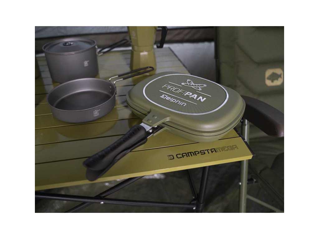 ProfiPAN je oboustranná, uzavíratelná pánev, která vám umožní přípravu nejrůznějších jídel, ať už se nacházíte na rybách, turistice, nebo jen kempujete v přírodě s přáteli. Díky magnetu na rukojeti jednotlivé poloviny po uzavření výborně drží spolu a pánev tak můžete během přípravy pokrmu libovolně obracet. O dokonalou těsnost se přitom stará obvodové těsnění odolné vysokým teplotám. Jednoznačně největší výhodu uzavřené pánve je fakt, že teplo se uvnitř mnohem rychleji akumuluje a během vaření neuniká z pánve ven. Díky tomu je příprava jídla v přírodě mnohem rychlejší a jednodušší. Základ pánve tvoří hliník s nepřilnavou povrchovou úpravou, která maximálně redukuje připáleniny během vaření, grilování či smažení. Takový povrch je navíc velmi snadno omyvatelný a odolný vůči mechanickému poškození. ProfiPAN je dodávána s náhradním těsněním v základě, přičemž v případě potřeby je možné dokoupit další vyměnitelné těsnění. Technické parametry: Vnější rozměry pánve: 28cm x 22cm x 7cm Vnitřní rozměry pánve: 26cm x 20cm Délka rukojeti: 20cm Celkové rozměry s rukojetí: 28cm x 42cm x 7cmDoplňkové parametry