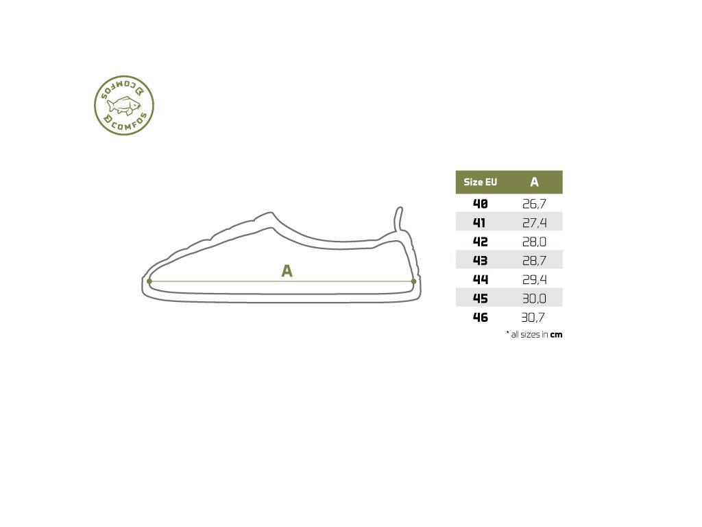 Pantofle Comfos v originální kamufláži C2G jsou navrženy speciálně pro milovníky rybolovu, kempování, turistiky a pro všechny, kteří se rádi pohybují v přírodě. Tyto pantofle jsou lehké, kompaktní a snadno je přibalíte do vašeho zavazadla, což z nich činí ideálního partnera na dobrodružství mimo civilizaci. Pantofle jsou navrženy s důrazem na pohodlí, o což se stará pohodlná stélka, která poskytuje úlevu vašim unaveným nohám po dni plném aktivit. Odolná a robustní pogumovaná podrážka poskytuje dostatečný grip s terénem, což je neocenitelné v případě potřeby pohybu mimo stan či bivak, například během neočekávaného záběru ryby. Povrch pantoflí je snadno omyvatelný a odolný vůči špíně a prachu. Kromě všech zmíněných výhod jsou pantofle velmi stylové, a díky modernímu designu se v nich budete cítit dobře v přírodě, ale také při relaxu v kempu.Doplňkové parametry