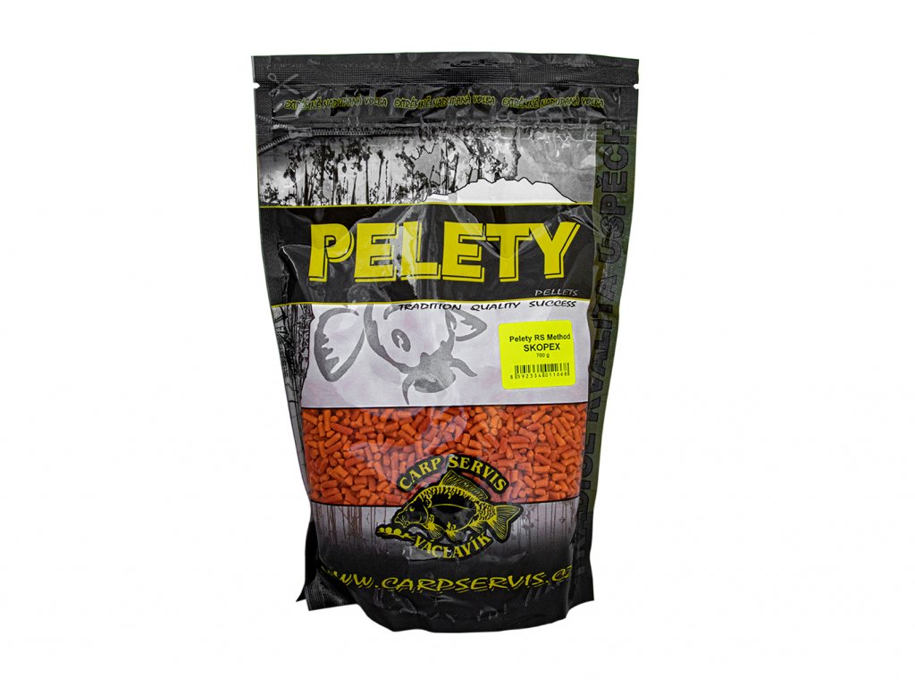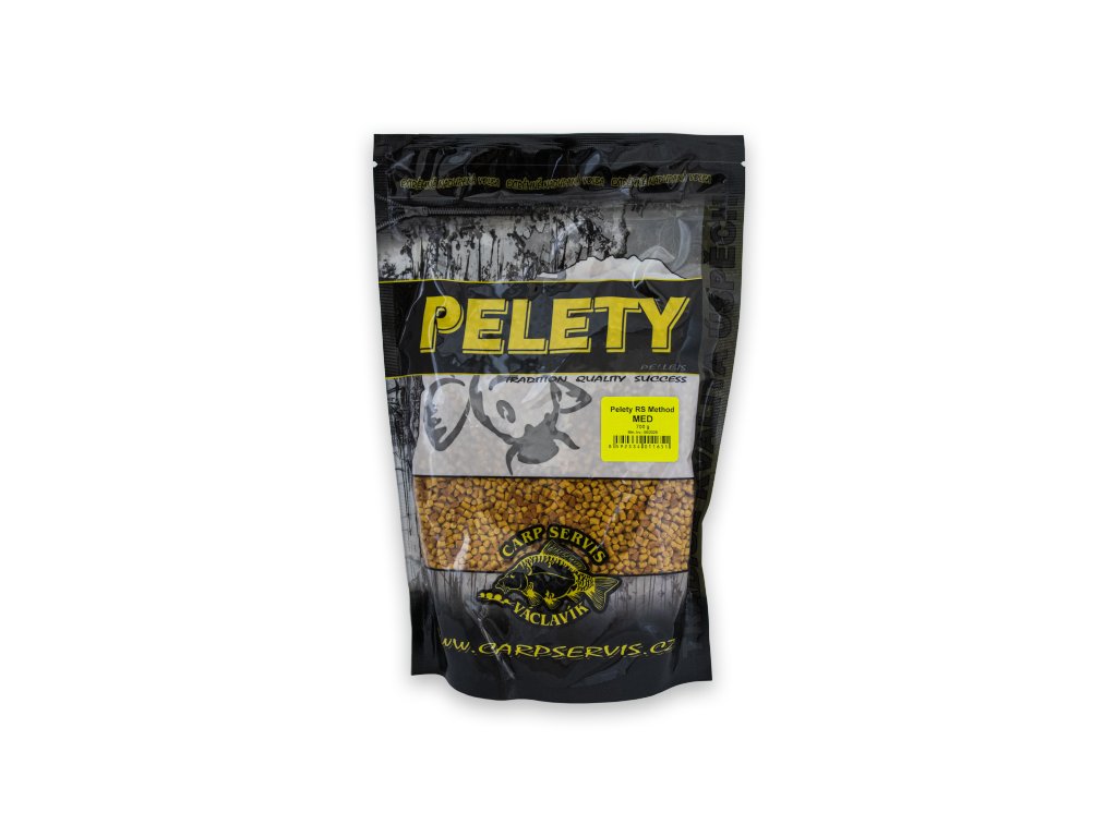 Pelety RS Method jsou stvořeny pro chytání na method feeder. Díky použité technologii výroby je lze velmi snadno připravit pro nalisování do krmítek, kde dobře drží a ve vodě se rychle rozpadají na jednotlivé peletky. Velmi rychle přilákají ryby ke krmítku. Jsou rychlo rozpustné a jsou napěchovány různými druhy atraktorů, které se prolínají v celém spektru výroby Carp Servis Václavík. Příprava je jednoduchá, stačí je na cca 30 vteřin zalít vodou, poté scedit a nechat na cca 5 minut odstát (záleží na teplotě). Poté jsou optimální pro aplikaci do krmítek.Další použití je při vnadění pomocí PVA punčoch. V tomto případě se doporučuje před použitím pelety zatraktivnit některým z tekutých atraktorů (CSL, Booster, Melamix, Lososový protein). Je také možné tyto pelety přidávat do methodmixů a feederových směsí. Jejich účinnost se zpravidla projeví velmi brzy. - Průměr: 3 - 4 mm - Barva: červená - Balení: 700 g Výrobce: CSVDoplňkové parametry