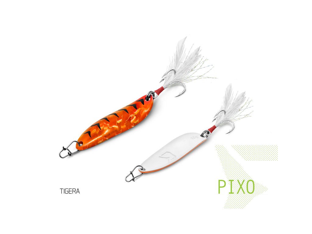 Plandavky série Delphin PIXO jsou ideálními umělými nástrahami pro lov větších dravých ryb jako je štika, candát nebo bolen. Jejich tělo je vyrobeno ze zinkové slitiny. Jsou vybaveny kvalitním a pevným trojháčkem se speciální úpravou hrotů Cutting point, který zajistí snazší proniknutí háku i do té nejtvrdší tlamy našich dravců. Také jsou vybaveny i karabinkou FAST LOCK SNAP kvůli zjednodušenému měnění nástrah. Kromě větších dravců jimi nepohrdnou ani menší dravé ryby na jezerech či vodních tocích. Plandavky PIXO mají zvlněný tvar těla, které dokonale imitují živou nástrahu. Technické parametry: Model: PIXO Hmotnost: 10g Délka těla plandavky: 5,6cmDoplňkové parametry