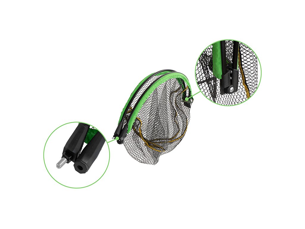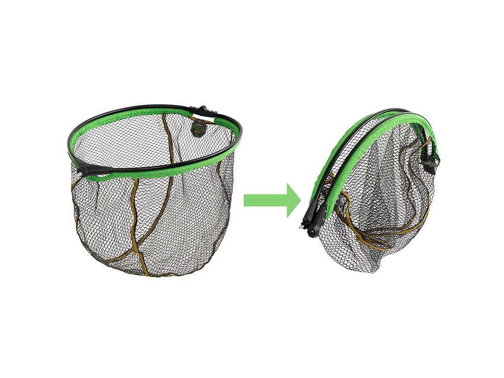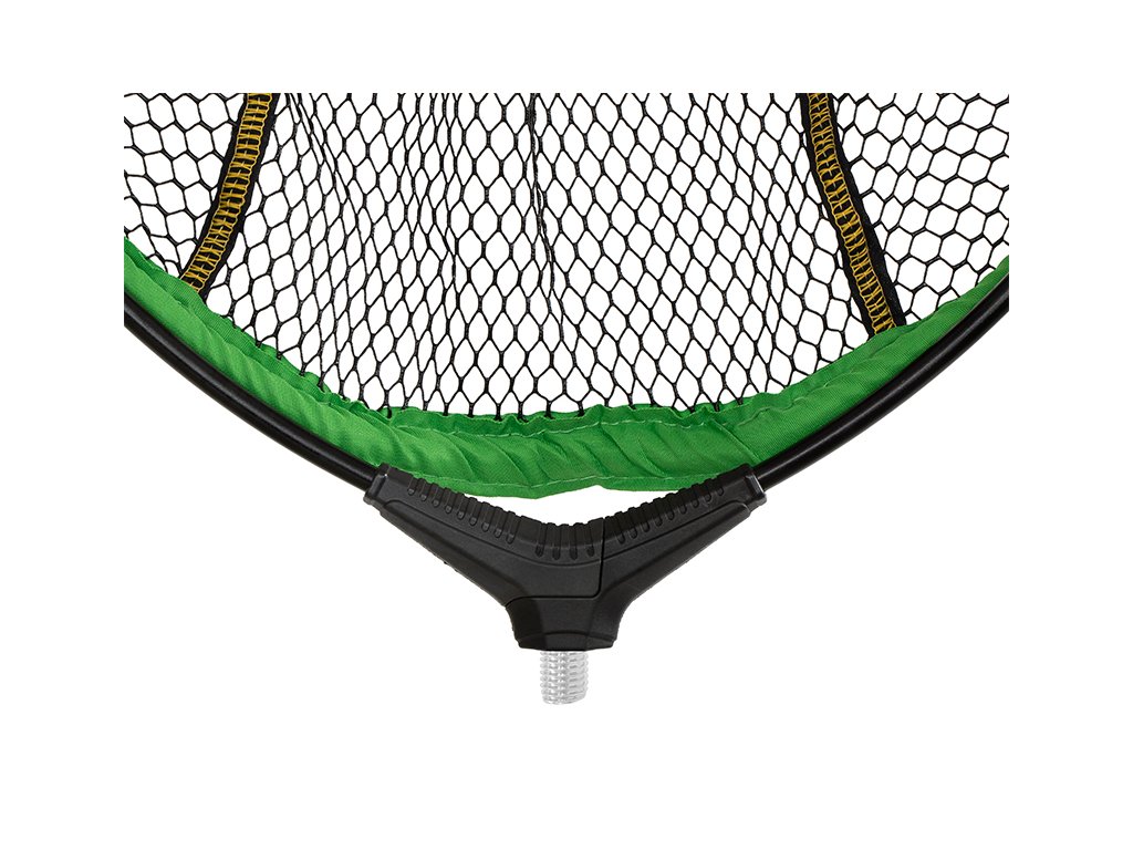 Plovoucí hlava podběráku oválného tvaru ze série REAXE disponující lehkým a pevným hliníkovým rámem černé barvy. Síťka FloateR FoldROUND je celá pogumovaná, tím pádem nenasává okolní vodu, snadno a rychle na vzduchu vysychá. Pod rámem je navíc prošita výraznou zelenou látkou po celém obvodu pro zvýšení pevnosti a odolnosti. Jelikož hlava plave na hladině, můžete si ji pohodlně položit na vodu než se vám podaří rybu vyčerpat a navést k podběráku. Designově je laděna do černo-zelené barvy a tím skvěle doplňuje feederovou řadu produktů REAXE. Rám této hlavy je navíc skládatelný na polovinu a tím pádem zabere ve vaší výbavě méně místa než standardní podběrákové hlavy. Hlava se ideálně hodí pro kombinaci s rukojeťmi REAXE, ale díky univerzálnímu závitu je vhodná pro většinu prodávaných rukojetí na trhu. Technické parametry: Pogumování: Ano Velikost očka: 8mm x 8mmDoplňkové parametry