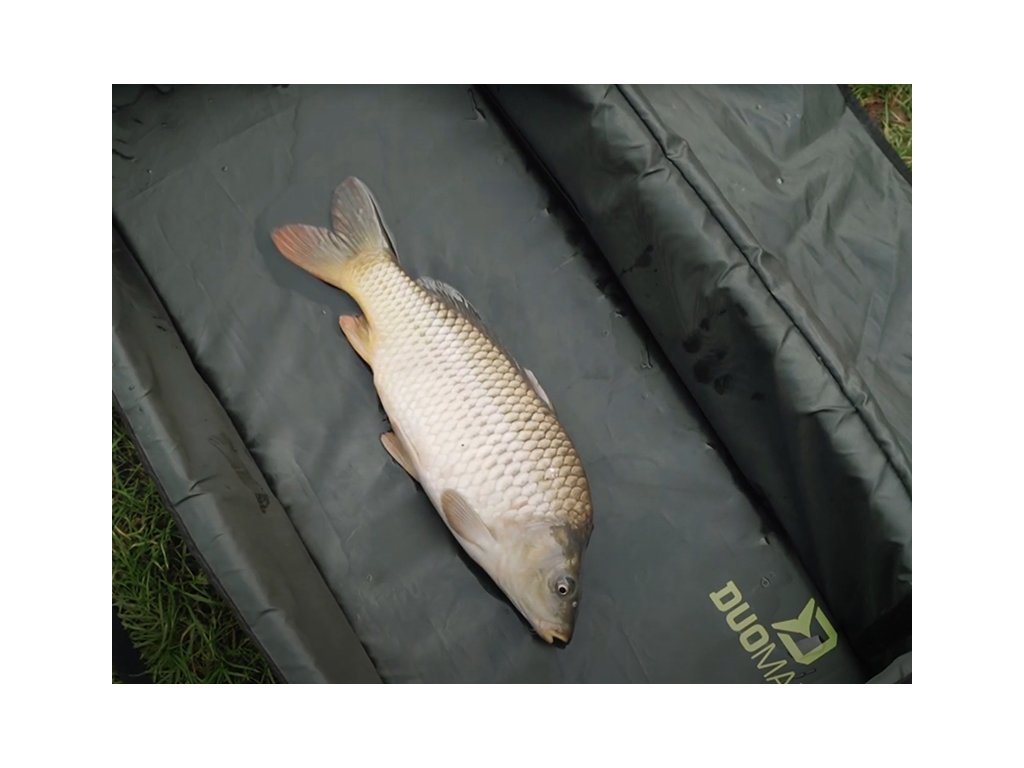 Po úspěchu jedinečné podložky DuoMAT jsme se rozhodli na trh uvést její větší a všestrannější verzi. DuoMAT XXL v sobě uchovává všechny podstatné vlastnosti charakteristické pro podložky z této řady. Jsou jimi zejména variabilita, skvělé transportní rozměry, kvalita zpracování použitých materiálů a v neposlední řadě bezpečnost úlovku. Polstrování z 30 mm silné a pevné pěny se postará o spolehlivou ochranu vašich úlovků. Okraje vyvýšené až do výšky 20 cm zaručí, že ryba z podložky nevyklouzne ani při nerovném terénu a vrchní překrývací část opatřena suchými zipy spolehlivě zamezí případnému vyskočení úlovku. Materiál použitý při výrobě je rychleschnoucí, odolný a v případě zašpinění ho lze jednoduše očistit. Název DuoMAT znamená, že podložku lze použít dvěma způsoby. Jako standardní podložku bez okrajů, nebo si můžeme tyto okraje zvednout a zafixovat je pomocí suchých zipů, které se nacházejí v každém z rohů. Při vypouštění ryby lze odepnout jen jeden z okrajů, čímž ryba snadno vyklouzne do vody. Podložka disponuje dvěma gumovými popruhy, které jsou určeny k upevnění během transportu. Oproti základnímu Duomatu tento obsahuje navíc pevné textilní rukojeti, se kterými je možné samotnou podložku, ale také úlovek v ní pohodlně přenášet. DuoMAT XXL je nestandardně, ale zato velmi důmyslně řešená podložka, která je díky svým parametrům plnohodnotnou variantou vaničkových podložek, přičemž její cena a transportní rozměry jsou mnohem příznivější. Technické parametry: Tloušťka matrace: 3 cm Rozměry podložky na plocho: 140x80 cm Rozměry podložky s vyvýšenými okraji: 100x45 cm Výška okraje: 20 cmDoplňkové parametry