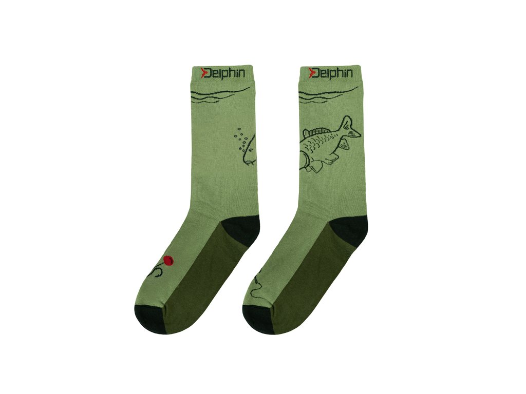 V šatníku správného rybáře nesmí chybět dobré ponožky a to hlavně ty, které na sobě nesou design s kaprem. Kombinace zelené a červené barvy s rybářským motivem si nepochybně najde své příznivce mezi mladší, ale i starší generací rybářů. Univerzální velikost 41-46 poskytne dokonalý komfort pro každou nohu. Pohodlný materiál s hřejivými vlastnostmi oceníte hlavně při jarních a podzimních rybaření, rozhodně je však můžete používat během celého roku. Výška a střih ponožky je vhodná pro různou rybářskou či vycházkovou obuv, díky čemuž jsou vhodné nejen na ryby, ale i běžné nošení. Technické parametry Materiálové složení: 80% bavlna, 15% polyester, 5% elastan Velikost: 41-46Doplňkové parametry