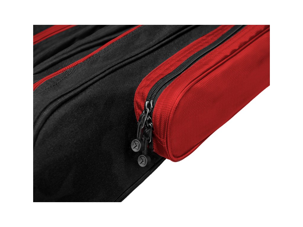 Do detailů propracované tříkomorové pouzdro z dílny firmy Delphin, které splní požadavky i náročných příznivců lovu feederovou technikou. Je designované v typické bordovo-černé kombinaci charakteristické pro feederové produkty ze série ATOMA. Boční a spodní stěny pouzdra jsou důkladně polstrované, což zaručuje transport bez obavy o vaše pruty. Každá komora má zvláštní zipovatelný vstup, díky čemuž jsou pruty od sebe odděleny a excelentně chráněny před poškozením. V každé jedné komoře se nacházejí také polstrované kapsy pro uložení prutů, které je navíc možné dokonale zafixovat páskami se suchým zipem. Takto uložené a fixované pruty najdete po transportu vždy na svém místě. Výhoda pouzdra ATOMA spočívá také v tom, že se do něj vkládají pruty s navijáky orientovanými směrem nahoru. Hlavní deviza takového systému spočívá v tom, že nedochází při položení pouzdra na zem k přímému kontaktu navijáků se zemí. Tím pádem jsou lépe chráněny a je minimalizována šance jejich poškození. Po bocích se nacházejí dvě kapsy se zipem. Jedna z nich je extra dlouhá a je možné do ní uložit například podběrákovou tyč, vidličky, či různé feederové držáky prutů a ramena. Z vnější strany je navíc na ní našitá kapsa a stahovací popruh, díky kterému můžete přenášet například další prut, případně vidličky a jiné příslušenství. Na druhé straně pouzdra se nachází menší zipovatelná kapsa, která je ideální na tubus s feederovými špičkami. Pouzdro je šité z velmi odolné a pevné textilie, která zamezuje předčasnému opotřebení a znehodnocení. Vínové části jsou zase z nepromokavé, kvalitní látky, díky které se nemusíte obávat ani menšího deště. Delphin ATOMA disponuje délkově nastavitelným ramenním popruhem s vyztuženou částí, ale také rukojeťmi, usnadňujícími transport. Spolu s kvalitními zipy s běžcem, zajímavým designem a detailním zpracováním je toto pouzdro nejen velmi efektní, ale i vysoce praktické. Technické parametry: Model: Puzdro Delphin ATOMA Triple 360-3 Vnější délka pouzdra: 132 cm Délka boční kapsy: 110 cm Délka kapsy na špičky: 66cm Pro pruty: 360cm / 3 díly Model: Puzdro Delphin ATOMA Triple 390-3 Vnější délka pouzdra: 147 cm Délka boční kapsy: 110 cm Délka kapsy na špičky: 66cm Pro pruty: 390cm / 3 díly, 400cm / 3 dílyDoplňkové parametry