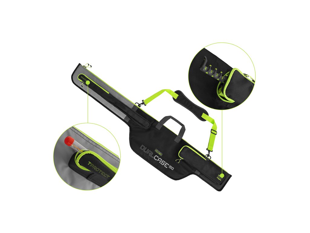 REAXE DualCASE je dvoukomorové pouzdro speciálně navržené pro pohodlné uložení a transport prutů a dalšího náčiní určeného pro lov feederovou technikou. Vyznačuje se velkorysým vnitřním prostorem, což v praxi znamená, že v pouzdru budete mít vždy dostatek místa pro různé modely feederových prutů a nestane se, že by konkurenční model prutu do našeho pouzdra nepasoval. Pouzdro je navrženo v černo-šedé barvě s výraznými zelenými doplňky a je vyrobeno z odolné textilie, která bez problémů odolá slabšímu dešti, vlhkosti způsobené rosou a hrušímu zacházení. Ve spodní části je navíc odolný, nepromokavý materiál umožňující postavení pouzdra na mokrou zem, aniž by došlo k jeho znehodnocení. Pouzdro je na všech stěnách včetně předělovací přepážky plně polstrované měkkou výstelkou. Tím pádem nehrozí při transportu 2 prutů jejich vzájemné poškození. Díky rozšířené části pro uložení navijáků se dovnitř vejdou všechny standardně používané feederové sestavy. Pouzdro je vybaveno vnější kapsou T-PROTECT, která je speciálně určena pro uložení tubusu s feederovými špičkami. Kapsa je také vyrobena z odolné pogumované tkaniny, díky které budou náhradní špičky lépe chráněny. Na téže straně se nachází podélná kapsa HOLDER POCKET se zipem, která je určena pro naše feederové držáky z řady REAXE, případně další menší příslušenství. Na opačné straně se nachází podélná kapsa s plastovým klipem a zipem určená pro skládací podběrák nebo podběrákovou tyč. V jeho spodní třetině se nacházejí další dva otvory určené pro zasunutí vidliček, doplněné zatahovacím popruhem určeným k jejich zafixování. Kvalitní a dostatečně velký odepínatelný ramenní popruh a dvě látkové rukojeti usnadňují transport pouzdra a jeho ukládání. Mohutné zipy s kvalitními běžci a promyšlenými úchyty umožňují komfortní uzavření jednotlivých částí pouzdra. Technické parametry: Model REAXE DualCASE 125cm Rozměry: 125 x 30 x 11cm Rozměr kapsy: 118 x 10cm Rozměr kapsy T-protect: 68 x 5cm Rozměr kapsy Holder pocket: 40x 9cm Vhodné pro pruty: 300cm/3 díly, 330cm/ díly Model REAXE DualCASE 140cm Rozměry: 140 x 30 x 11cm Rozměr kapsy: 131 x 10cm Rozměr kapsy T-protect: 68 x 5cm Rozměr kapsy Holder pocket: 40x 9cm Vhodné pro pruty: 360cm/3 díly Model REAXE DualCASE 150cm Rozměry: 150 x 31 x 11cm Rozměr kapsy: 140 x 10cm Rozměr kapsy T-protect: 68 x 5cm Rozměr kapsy Holder pocket: 40x 9cm Vhodné pro pruty: 390cm/3 díly, 400/3 díly Model REAXE DualCASE 165cm Rozměry: 165 x 30 x 11cm Rozměr kapsy: 155 x 10cm Rozměr kapsy T-protect: 68 x 5cm Rozměr kapsy Holder pocket: 40x 9cm Vhodné pro pruty: 430cm/3 dílyDoplňkové parametry