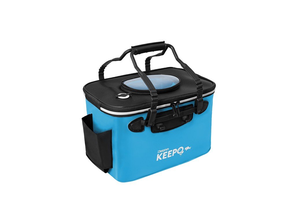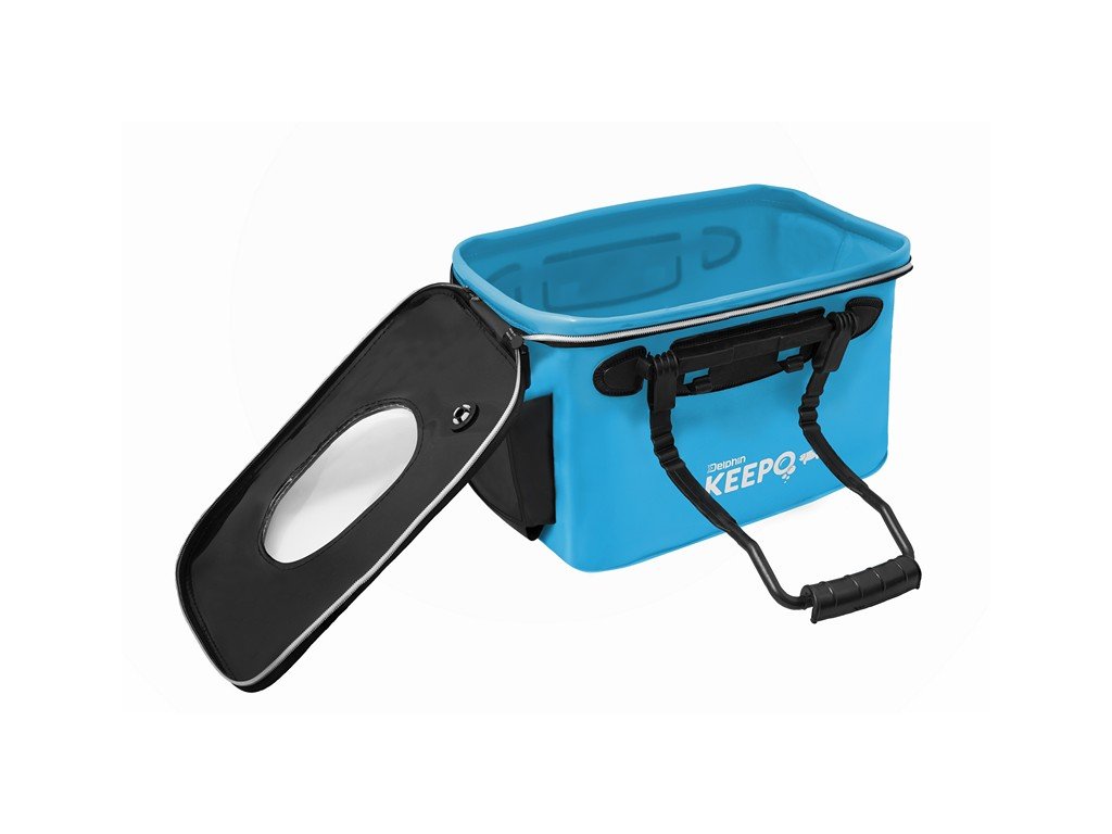Delphin KEEPO je praktická EVA taška určená především na přechovávání živých nástražních rybek. Jeho vrchní část se otevírá po celém obvodu pomocí zipu. Víko je na vrchní části opatřeno otvorem, který je vyroben ze síťoviny, takže máte dokonalý přehled, co se uvnitř nachází. Otvor se uzavírá jednoduše zipem po jeho obvodu a slouží ke vkládání a vyjímání živé nástrahy. Najdeme zde i malý otvor pro hadičku okysličovače. Okysličování je možné uložit do vnější kapsy, která byla pro tento účel i primárně navržena (např. okysličovače Delphin A-PUMP maxi nebo mini). Taška je vybavena dvěma plastovými úchopy, které je možné zafixovat zasunutím jejich vrchních částí do sebe. Delphin KEEPO je praktická pomůcka pro všechny, kteří potřebují své nástražní rybky přechovat během transportu na lovné místo. Alternativně je možné ji použít i na odkládání různého rybářského příslušenství. Technické parametry: Rozměr: 36cm x 25cm x 22cm Objem: 18,5lDoplňkové parametry