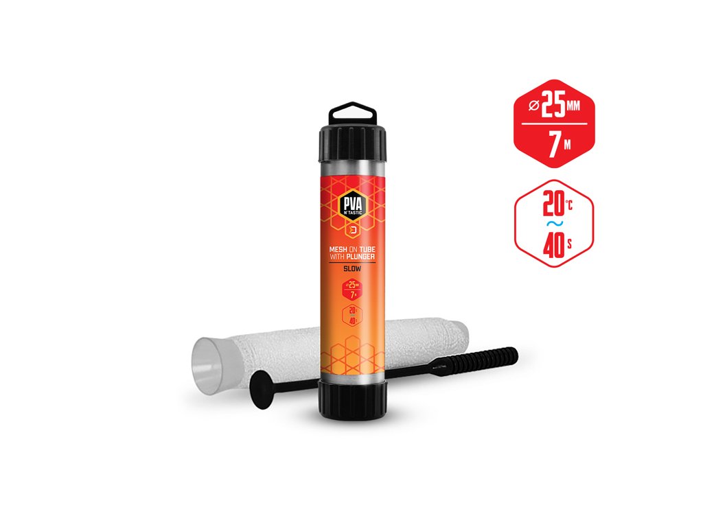 PVA punčocha s prodlouženou dobou rozpadu je ideální pro lov během teplejších měsíců, nebo při lovu ve větších hloubkách, kde montáž klesá déle ke dnu. Jedná se o vysoce kvalitní produkt vyrobený v EU, při kterém díky důkladnému pletení nedochází ke svévolnému trhání punčochy a zároveň se výborně plní i velmi jemnými částicemi, čímž budete moci spolu s nástrahou poslat do vody i maximálně atraktivní návnadu přímo na montáži. Součástí balení je tuba a tlouk, které umožňují snadné plnění punčochy vnadící směsí. PVA punčocha se po čase přímo úměrném teplotě vody rozpustí, a tak uvolní krmnou směs v bezprostřední blízkosti nástrahy, čímž výrazně zvýší její atraktivnost pro kaprovité ryby. Upozornění: PVA produkty jsou vodou rozpustné, manipulujte s nimi proto jen se suchýma rukama, aby nedošlo k jejich deformaci či poškození. Technické parametry: Průměr: 25mm(úzká) Délka: 7m Doba rozpustnosti: cca 40s/20°C vodaDoplňkové parametry