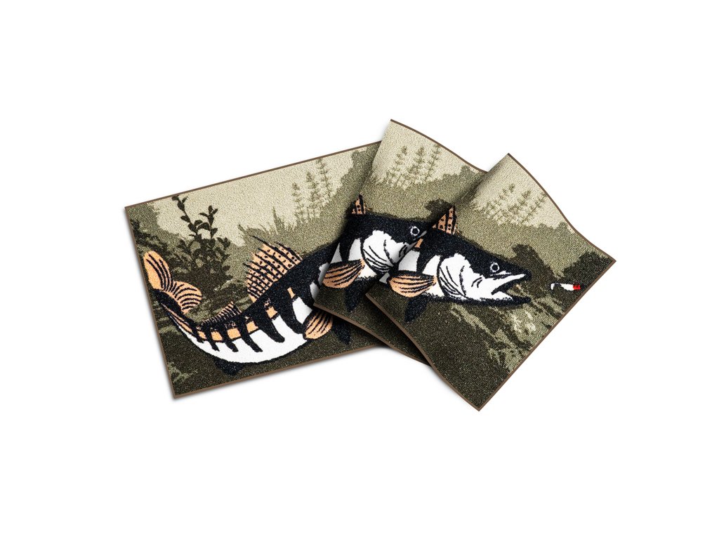 Excelentní rohož CatchMe! Candát. Určitě potěší každého rybáře. Tato rohož je vyrobena z odolného materiálu, okraj je obšitý hnědým šitím a ze spodní části je ošetřena latexovou vrstvou. Rozměr 60x40 cm je velmi kompaktní a hodí se před všechny vstupní dveře. Ukažte návštěvě už u vchodu kdo je doma pánem :) Unikátní dizajn zobrazující candáta určitě zahřeje srdce nejednoho vláčkaře.Doplňkové parametry