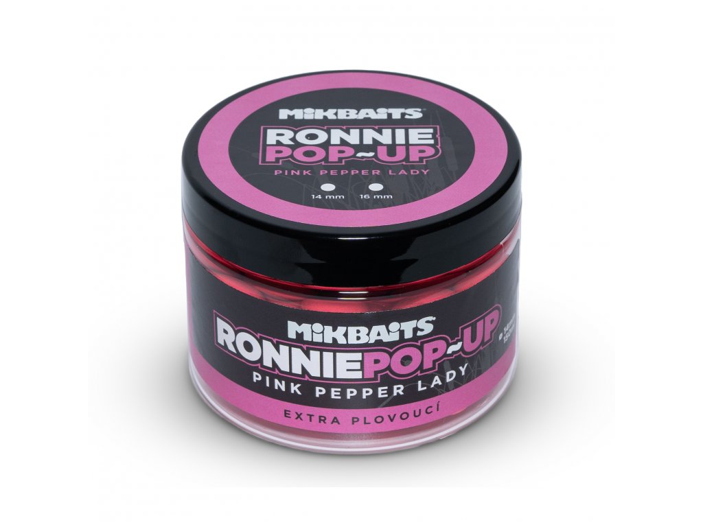 Ronnie pop-up jsou extra plovoucí fluo boilie vyráběné ze speciální směsi. Jsou nesmírně atraktivní, vysoce viditelné a především, dlouho a zcela nadstandardně plavou. To jim umožňuje nasadit je i na Zig rig nebo právě Ronnie rig, kde mnoho běžných pop-up selhává. Můžete je samozřejmě použít i na standardní nastražení pop-up nebo na panáčka v kombinaci s potápivým boilie.Doplňkové parametry
