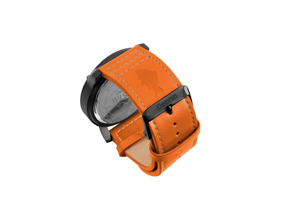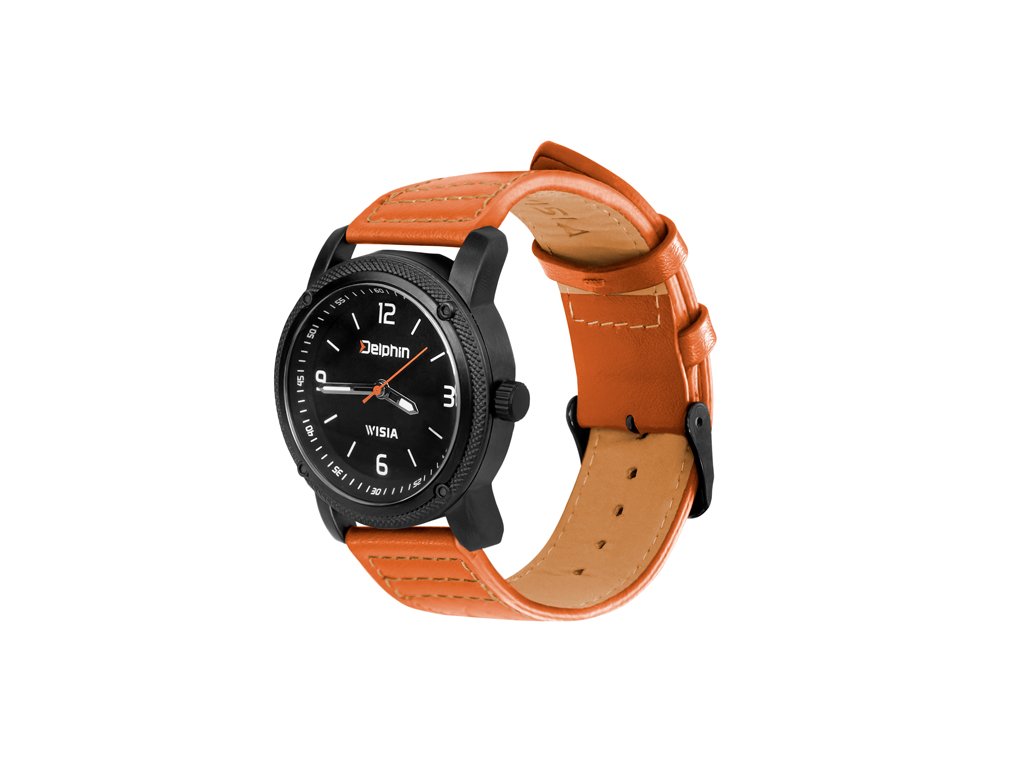 Elegance, styl a precizně zpracované detaily. To jsou tři hlavní faktory, které se spojily v hodinkách Delphin WISIA. Již při prvním kontaktu vás upoutá výjimečný design tvořený hnědými koženkovými řemínky a černým ciferníkem s bílou grafikou. Kromě toho si však nejde nevšimnout několika velmi efektních detailů, které ulahodí každému rybáři a příznivci značky Delphin. Snad nejvýraznějším je silueta kapra na řemínku a také na spodní straně hodinek. Logo Delphin přímo na ciferníku, či na kovovém uzávěru podtrhují výjimečný styl tohoto produktu. Tělo hodinek je vyrobeno z extra pevného a odolného kovu, které minimalizuje možnost mechanického poškození. Samotná řemínka jsou robustní a také velmi pevné což přispívá k jejich dlouhé životnosti. O spolehlivou indikaci času za všech okolností se stará kvalitní strojek pohánějící ručičky, ukrytý uvnitř. Podle mezinárodní stupnice je tento model označen jako voděodolný do 30m. Toto označení splňuje všechny náležitosti hodinek, které mohou být vystaveny tekoucí vodě (například mytí rukou), či pózování s úlovkem ve vodě, kdy absolutně nepřekáží jejich postříkání, či kontakt s vodní hladinou. Pokud patříte mezi lidi vyznávající elegantní styl, je to právě Delphin WISIA, která se bude dokonale vyjímat na vašem zápěstí. Technické parametry: Průměr ciferníku: 43mm Baterie: SR626SWDoplňkové parametry