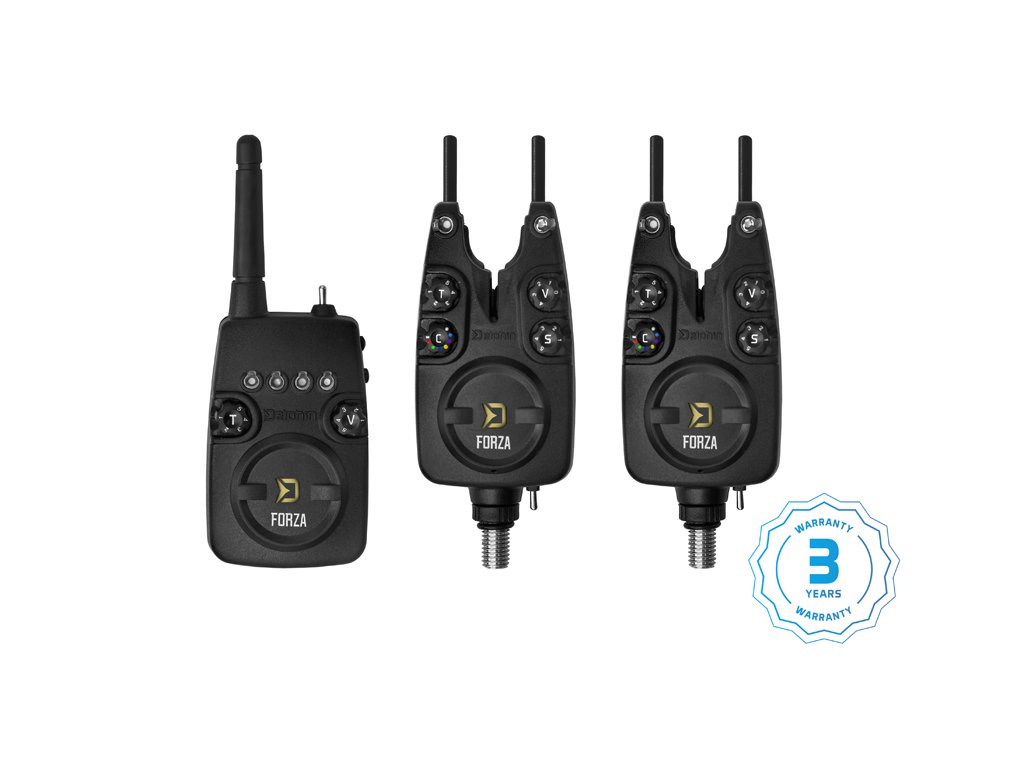 Delphin FORZA je sada signalizátorů s příposlechem poskytující spolehlivou světelnou, zvukovou či vibrační signalizaci záběru za každých okolností. Tělo signalizátorů a příposlechu je vyrobeno z černého pevného ABS plastu, což zaručuje odolnost vůči mechanickému poškození. Aspektem, který přispívá k dlouhé životnosti je také absolutní voděodolnost. Každý signalizátor je možné pomocí páčky přepnout do denního nebo nočního režimu. V případě nočního režimu se rozsvítí poziční LED dioda, díky které budete mít vždy přehled o rozmístění vašich prutů. Signalizátory disponují širokou škálou volitelných parametrů. Tón signalizace (spínač T) a citlivost v rozmezí 1-9cm (spínač S) lze navolit podle potřeby až z pěti možností. Při "padáku" resp. zpětném záběru budete upozorněni odlišným tónem. Hlasitost lze nastavit také v pěti různých úrovních, přičemž úroveň 0 představuje tichý mód. Nespornou devizou signalizátorů ze sady FORZA je možnost vybrat si ze 7 barev signalizační LED diody. Každý si tak vybere svou oblíbenou a pokud zatoužíte po změně, tak si jednoduše zvolíte jinou barvu pomocí otočného spínače "C (colour)" a nemusíte tak kupovat nový signalizátor. Ve spodní části se nachází vstup pro 2,5 mm konektor pro připojení svítícího indikátoru záběru. Každý signalizátor navíc disponuje závity na upevnění "snag gear", které jsou i součástí balení. Navíc k signalizátorům získáváte pevný transportní kryt a k přijímači stolní držák! Samotný příposlech se vyznačuje spolehlivým přijímáním signálu i v porostlém terénu a jeho dosah představuje za optimálních podmínek až 160m. Disponuje 4 barevnými LED diodami, jejichž barvu je možné podle návodu zvolit pomocí tlačítka "P". Také je možné vybrat z 5 různých tónů a úrovní hlasitosti. Při přepnutí páčky směrem vpravo, se aktivuje vibrační mód. Příposlech všechny nastavené parametry uchovává v paměti. Sada je napájena pomocí 9V baterií a při jejich nízké kapacitě vás signalizátor i příposlech upozorní krátkým pípnutím. Určitě oceníte i stojan na příposlech, který je dodáván spolu se sadou a také ochranné kryty signalizátorů, které také najdete v balení. Do kufříku této sady je možné uložit maximálně konfiguraci 3 + 1 (3ks signalizátorů a jeden přijímač). Sadu FORZA lze spárovat se světlem LightCONTACT. Technické parametry: Sada 2+1 obsahuje: - 2x Signalizátory záběru - 1x Přijímač - 1x Transportní kufřík - 1x Stojan na přijímač / HOLD myFORZA - 2x Snag gears - 2x Ochranný kryt signalizátoru PŘIJÍMAČ / funkce: - 5 úrovní hlasitosti (tlačítko V, včetně tichého módu) - 4 různé tóny signalizace (tlačítko T) - Vibrační mód (v tichém módu) - 4 barevné signalizační LED diody - Zvolené nastavení uchovává v paměti - Paměť posledního záběru (tlačítko P) - Paměťová dioda - bliká nepřetržitě 15 sek. po záběru - Indikace slabé baterie neustálým krátkým pípáním - Mód pro testování dosahu soupravy - Dosah 140 m v závislosti na terénu - Napájení 1x9V baterie SIGNALIZÁTOR / funkce: - Voděodolný - 5 úrovní hlasitosti (spínač V, včetně tichého módu) - 5 různých tónů signalizace (spínač T) - 5 úrovní citlivosti (spínač S) - 7 možných barev signalizační diody (spínač C) - Pákový přepínač DENNÍ REŽIM/VYPNOUT/NOČNÍ REŽIM - Zvolené nastavení uchovává v paměti - Možnost uchycení snag gear - Signalizace zpětného záběru - odlišný tón - Paměťová dioda - bliká 20 sek. po záběru - Indikace slabé baterie krátkým pípnutím - Poziční noční diody - Vstup pro 2.5 mm konektor - Transportní kryt - Napájení 1x9V baterie Sada 2+1 obsahuje vždy modrý a červený signalizátor. Sada 3+1 obsahuje vždy modrý, červený a zelený signalizátor. Sada 4+1 obsahuje vždy modrý, červený, zelený a žlutý signalizátor.Doplňkové parametry