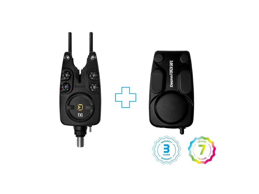 Delphin FX1 je spolehlivý signalizátor poskytující světelnou a zvukovou signalizaci záběru za každých okolností. Tělo signalizátoru je vyrobeno z černého pevného ABS plastu, což zaručuje odolnost vůči mechanickému poškození. Aspektem, který přispívá k dlouhé životnosti je také absolutní voděodolnost. Každý signalizátor je možné pomocí páčky přepnout do denního nebo nočního režimu. V případě nočního režimu se rozsvítí poziční LED dioda, díky které budete mít vždy přehled o rozmístění vašich prutů. Signalizátory disponují širokou škálou volitelných parametrů. Tón signalizace (spínač T) a citlivost (spínač S) lze navolit podle potřeby až z pěti možností. Při "padáku" resp. zpětném záběru budete upozorněni odlišným tónem. Hlasitost lze nastavit také v pěti různých úrovních, přičemž úroveň 0 představuje tichý mód. Nespornou devizou signalizátoru FX1 je možnost vybrat si ze 7 barev signalizační LED diody. Každý si tak vybere svou oblíbenou a pokud zatoužíte po změně, tak si jednoduše zvolíte jinou barvu pomocí otočného spínače "C (colour)" a nemusíte tak kupovat nový signalizátor. Ve spodní části se nachází vstup pro 2,5 mm konektor pro připojení svítícího indikátoru záběru. Každý signalizátor navíc disponuje "snag gear" a příjemným bonusem je pevný transportní kryt v balení zdarma. FX1 je napájen pomocí 9V baterie a při nízké kapacitě vás signalizátor upozorní krátkým pípnutím. Určitě oceníte i ochranné kryty signalizátorů, které jsou součástí balení.Doplňkové parametry