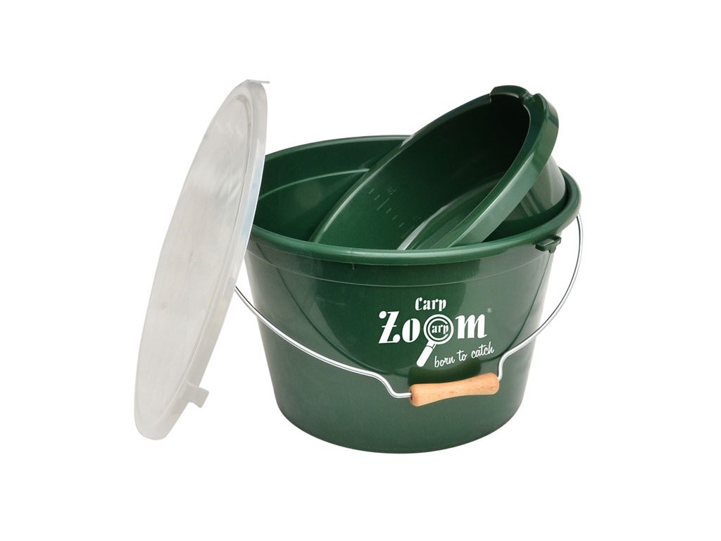 Praktický trojdílný set s víkem z kvalitního plastu, vhodný je pro míchání vnadících směsí a přepravu živých návnad. Snadno se také čistí. - objem 25 L - Průměr kbelíku: 42 x 26,5 cm - Průměr misky: 38 x 11 cm - barva: zelená Výrobce: Carp ZoomDoplňkové parametry