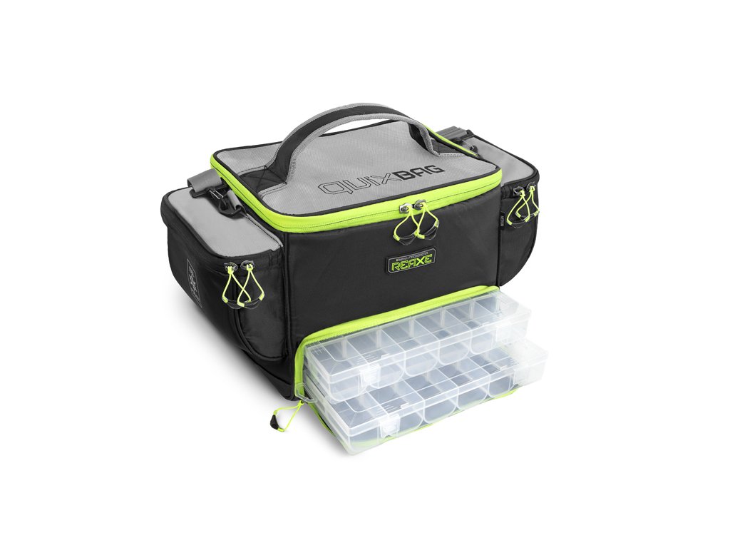 Praktická a všestranná feederová taška s množstvím přihrádek umožňující přehledné uložení Vašeho vybavení. Ve vrchní části se nachází velká přihrádka s přepážkou na suchý zip, kterou si můžete přesouvat po celé délce a tím modulovat přihrádku. Pod touto sekcí se nachází největší komora, ke které se dostanete z přední části tašky a naleznete zde 2 praktické plastové boxy na různé rybářské příslušenství. Po obou stranách tašky se nacházejí dvě rozměrné kapsy. Jedna z nich má termoizolační ochrannou vrstvu, díky které můžete v kapse uchovávat živou nástrahu a návnadu. Samozřejmě je dobré přidat také chladicí médium. vložky k cestovním chladničkám a pod. Druhá boční kapsa je vyrobena z klasické tkaniny a je vhodná pro ukládání různého menšího příslušenství. Tašku QuixBAG můžete nosit za praktickou rukojeť na vrchní části, nebo za popruh, který naleznete automaticky v balení. Taška je velmi kvalitně provedená a má masivní zipy s plastovými táhly. Designově je laděna tak, aby zapadla do série REAXE, tedy byla zvolena kombinace černé a šedé barvy s výraznými zelenými zipy a grafikou. Technické parametry: Rozměry: 41x30x25cm Rozměr vrchní přihrádky: 28x23x12cm Rozměry plastové krabice: 27x18x4cm Rozměry bočních sáčků: 20x15x7cmDoplňkové parametry